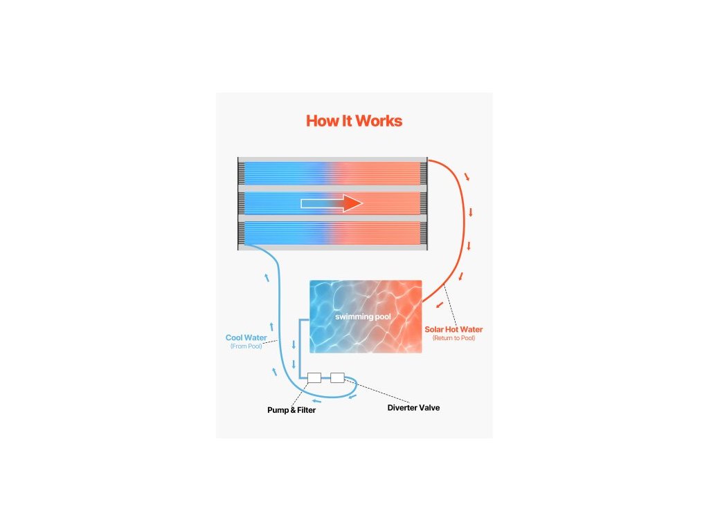 Solární ohřívač bazénu , systém ohřevu bazénu z HDPE o rozměrech 4 x 24 stop - odolný a odolný vůči povětrnostním vlivům, s kompletním příslušenstvím, univerzální solární panel pro ohřev bazénu – zvyšuje teplotu vody, pro nadzemní i zapuštěné bazényEfektivní solární ohřev bazénu