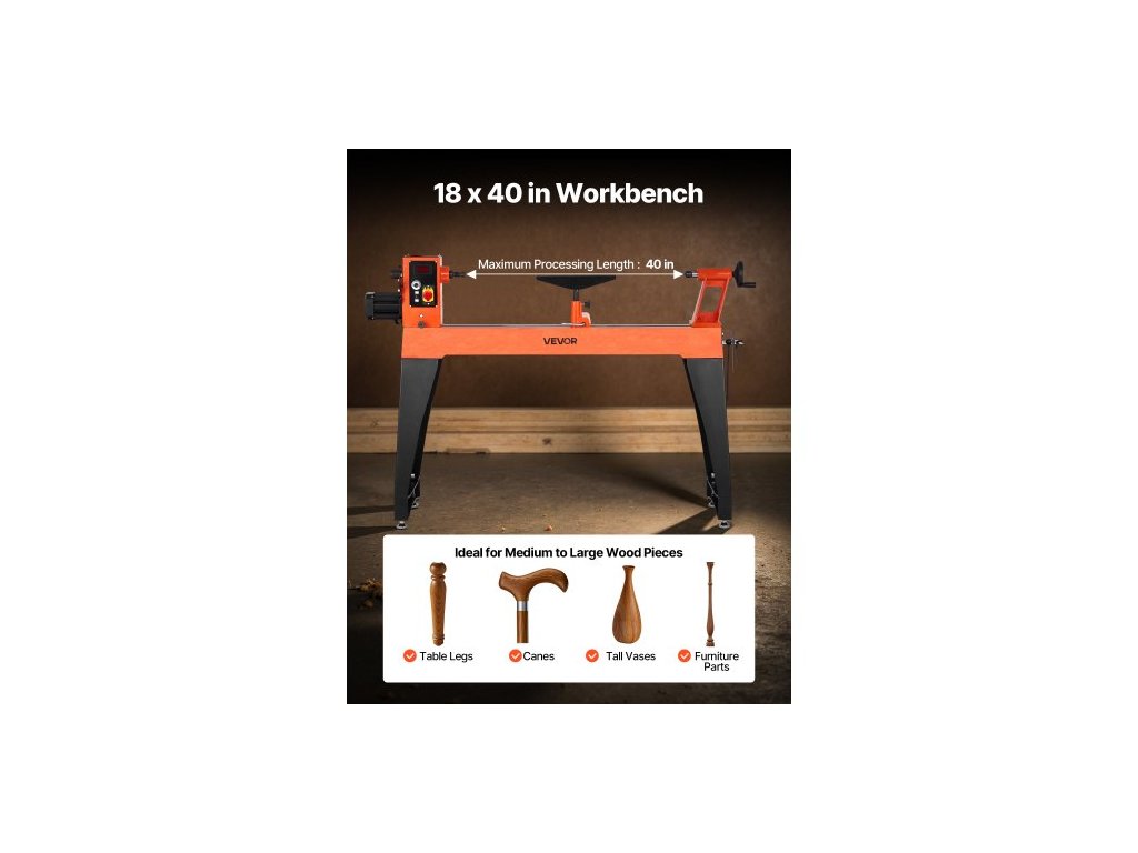 Soustruh na dřevo , 1500 W / 2 HP, soustruh na dřevo s proměnnou rychlostí 0 až 3200 ot./min, pracovní stůl 457 x 1020 mm, bezkartáčový stejnosměrný motor, litinové tělo, podpěra nástroje, pro střední až velké projekty při práci se dřevemJasný displej otáček