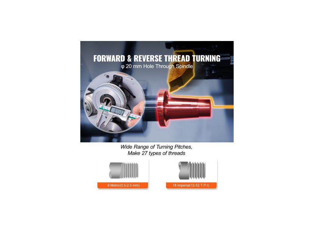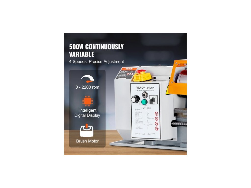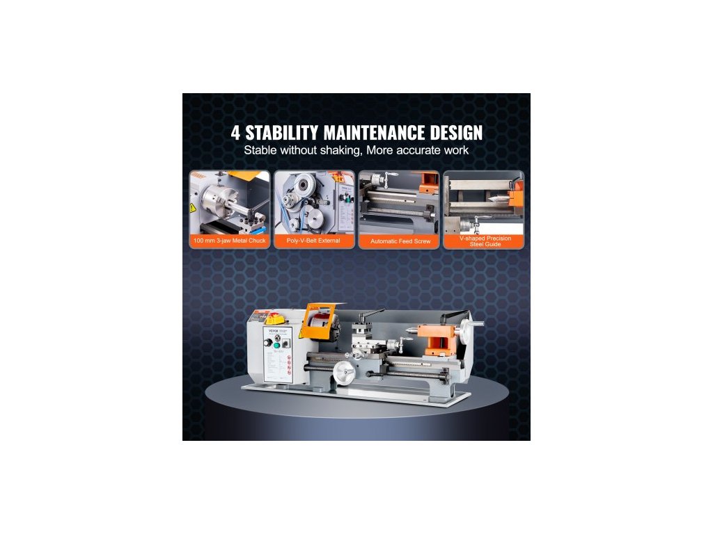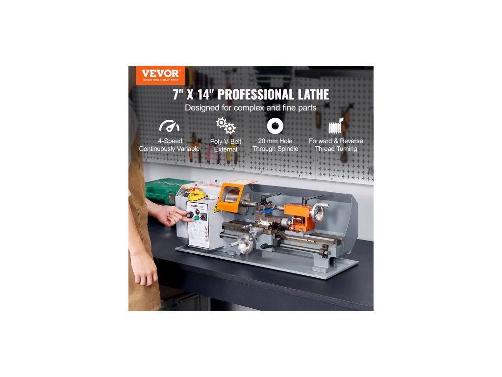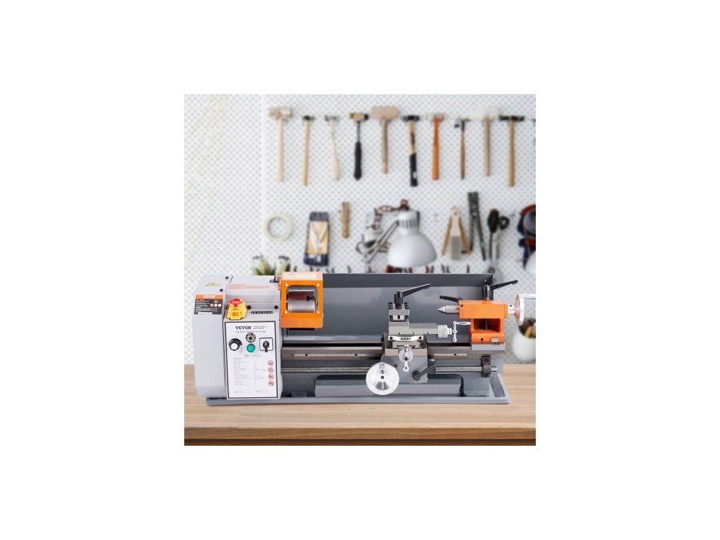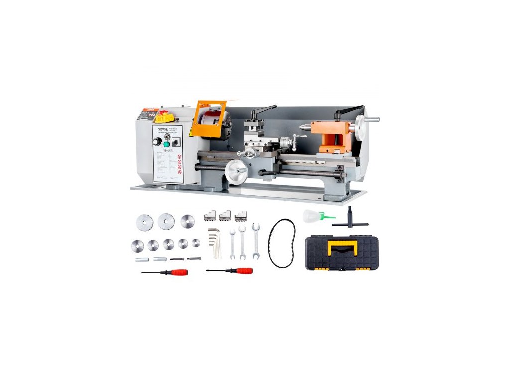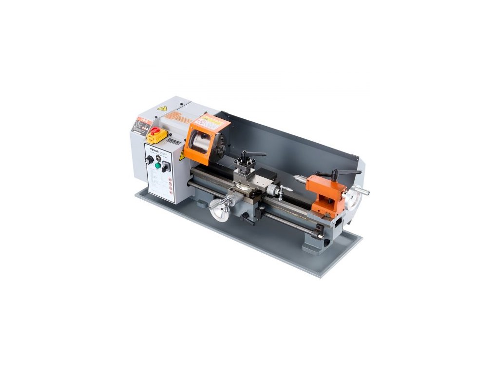 Soustruh na kov , 7'' x 13,78'', přesný stolní soustruh na kov, plynule nastavitelná rychlost 0–2200 ot./min, kartáčový motor 500 W, kovové převody, s bednou na nářadí pro zpracování přesných dílů