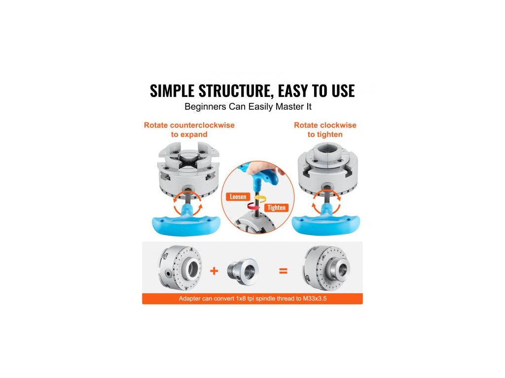 Soustružnické sklíčidlo KP2-3/4, 4čelisťové, průměr 2,75", kovové sklíčidlo pro soustruhy, příslušenství, samostředící nástroj, pro soustruhy, přesné obrábění, brusky, frézkyVýjimečná odolnost