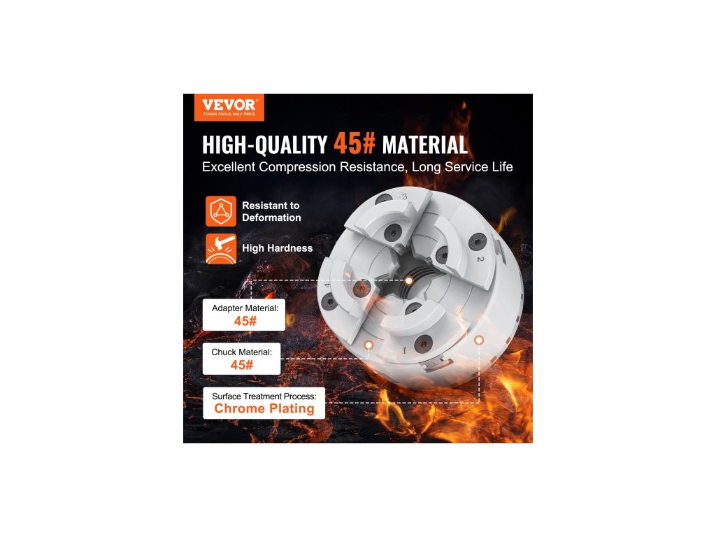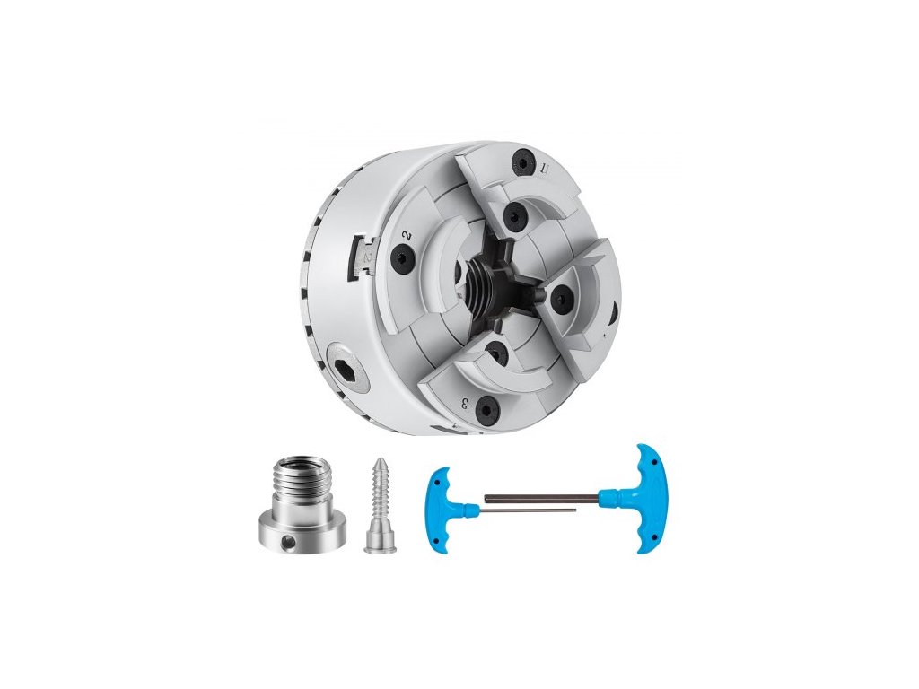 Soustružnické sklíčidlo KP96, 4čelisťové, průměr 9,5 cm, kovové sklíčidlo pro soustruhy, příslušenství, samostředící nástroj, pro soustruhy, přesné obrábění, brusky, frézkyVýjimečná odolnost