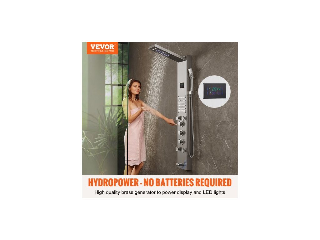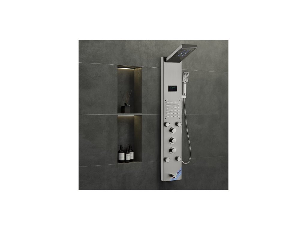 Sprchový panel , 6 sprchových režimů, LED a obrazovka, vodní sprchový panel, věž, dešťová sprcha, vodopád, 5 masážních trysek, výtok vany, ruční sprcha, nástěnná sprchová sada z nerezové oceli