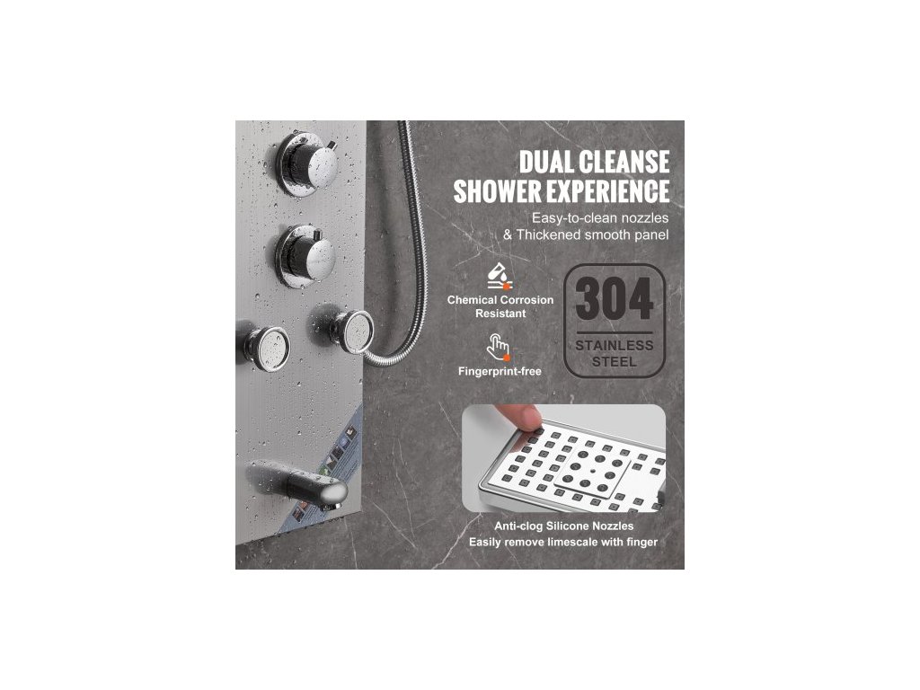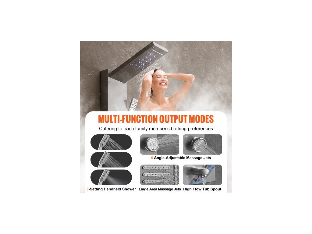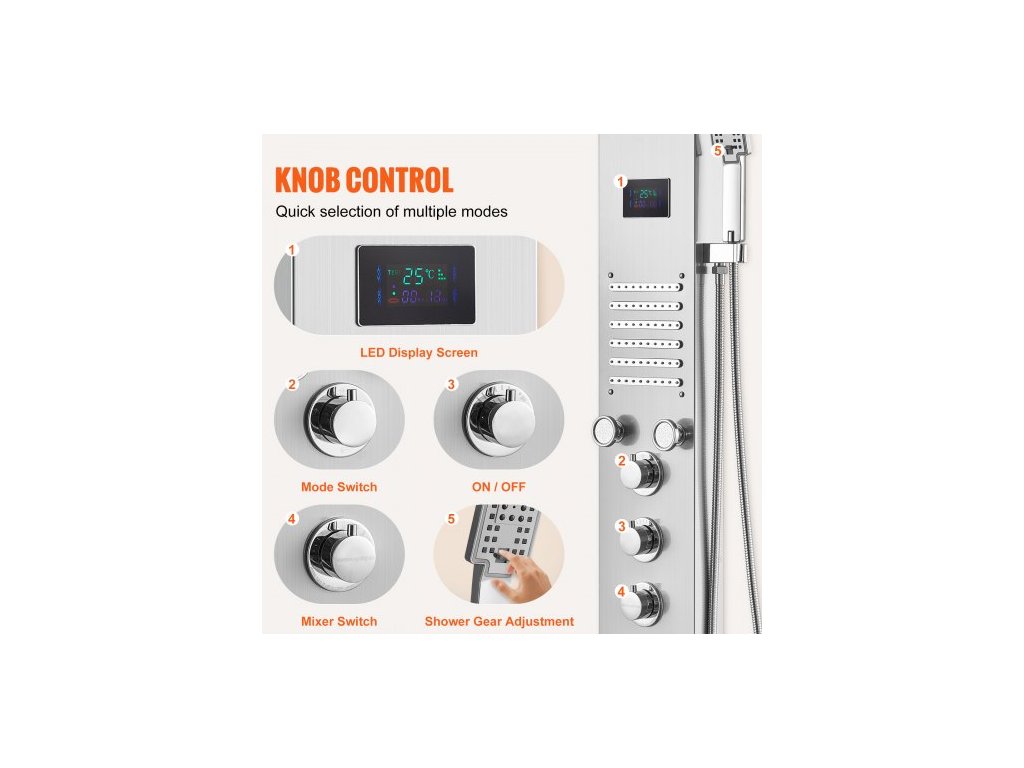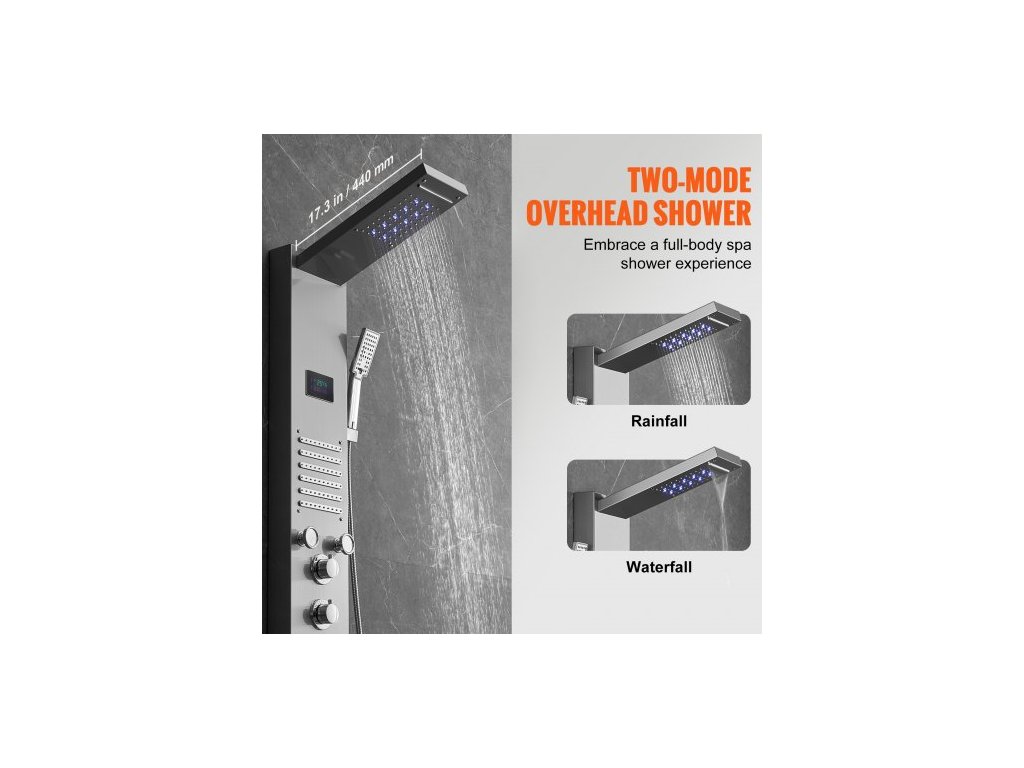 Sprchový panel , 6 sprchových režimů, LED a obrazovka, vodní sprchový věž, déšť, vodopád, 5 masážních trysek, výtok z vany, ruční sprcha, nástěnná sprchová sada z nerezové oceliHorní režimy proudu