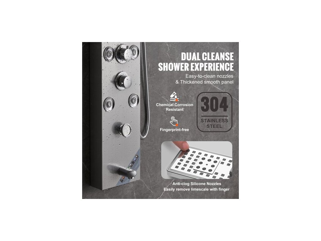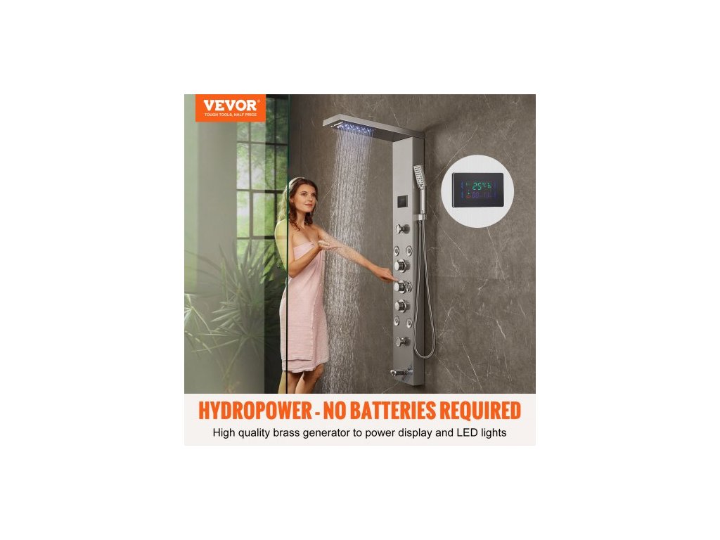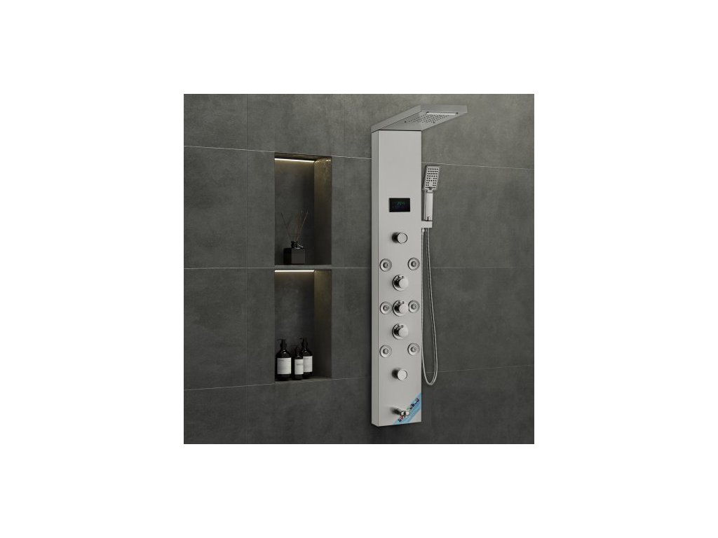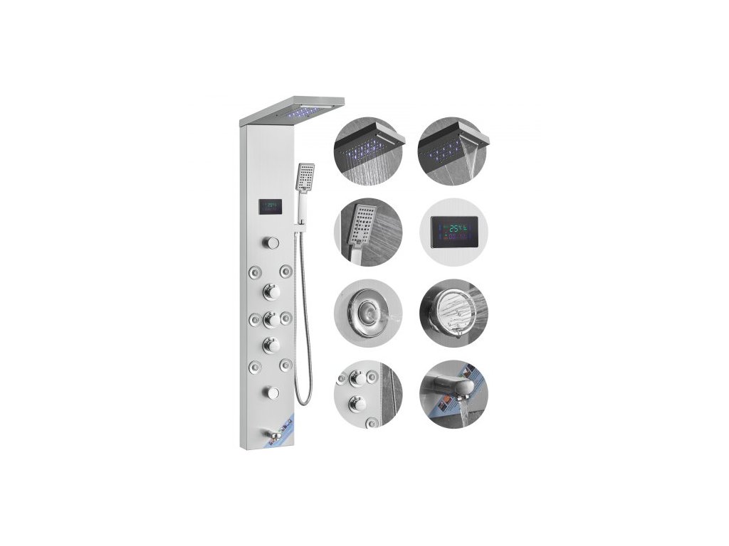 Sprchový panel , 6 sprchových režimů, LED a obrazovka, vodní sprchový panel, věž, dešťová sprcha, vodopád, 8 masážních trysek, výtok vany, ruční sprcha, nástěnná sprchová sada z nerezové oceli