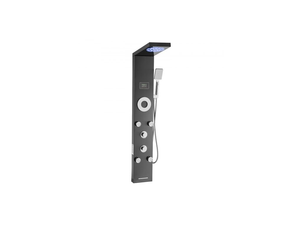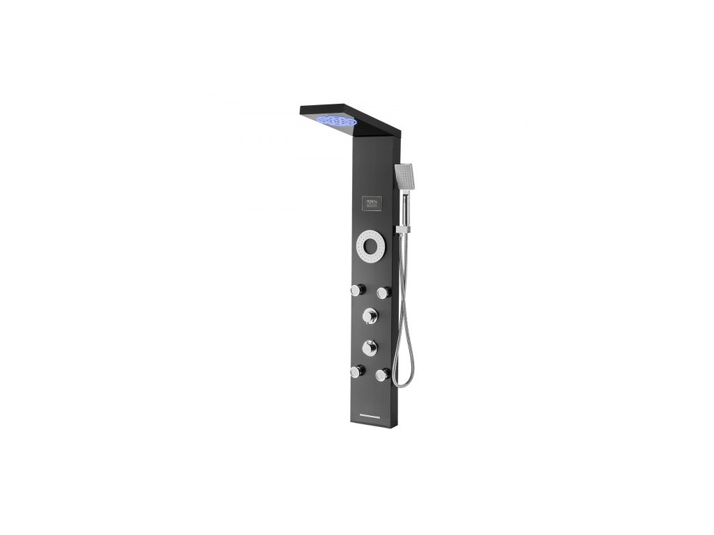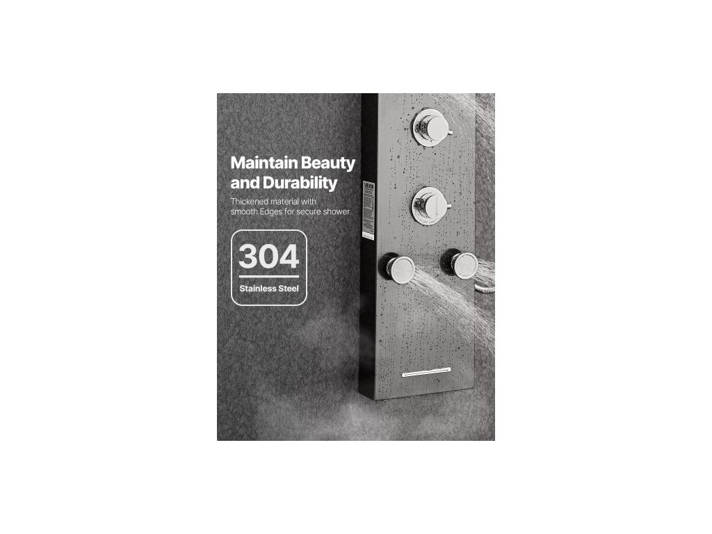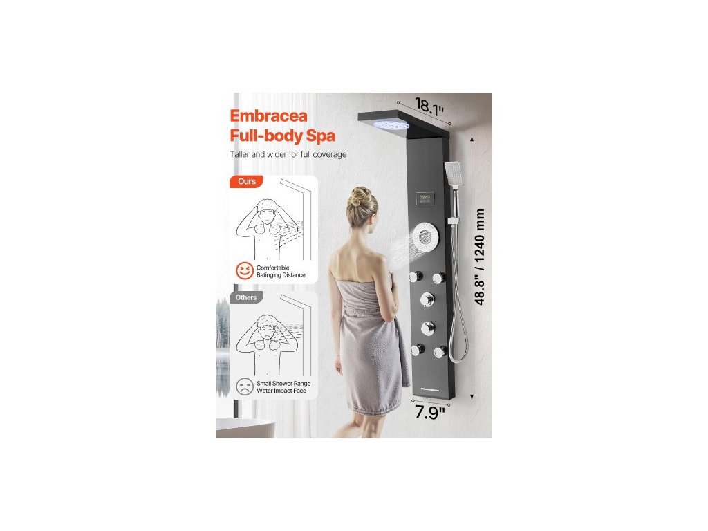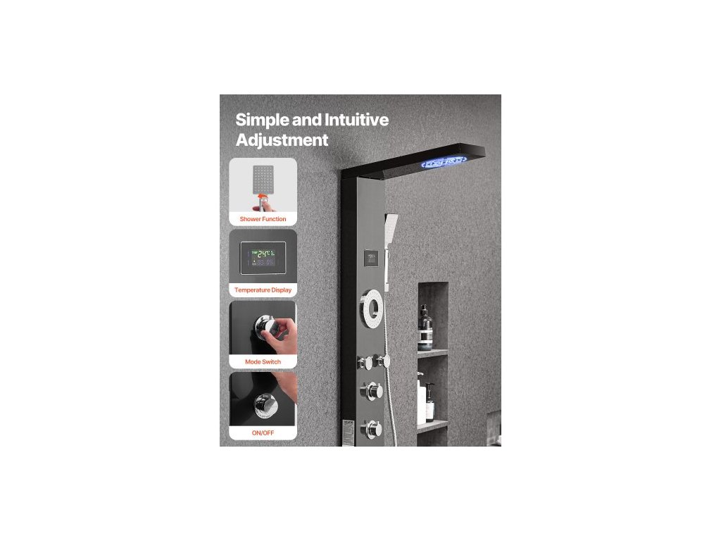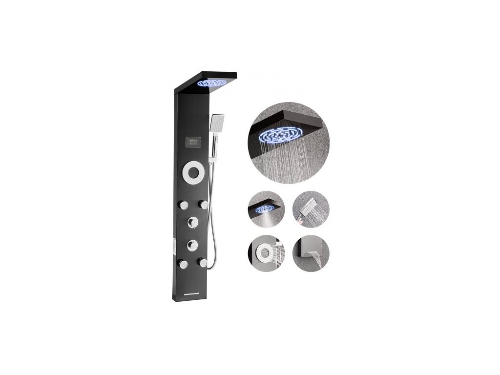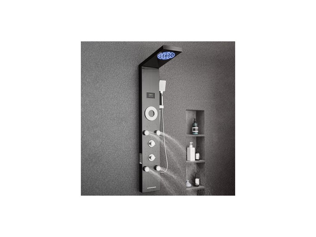 Sprchový panel s věžovým systémem a dešťovou sprchovou hlavicí, LED, sprchový sloup z kartáčované nerezové oceli 53 palců, 6funkční baterie, nástěnný masážní systém s 5 tryskami, ruční ovládání, vanová výpusť