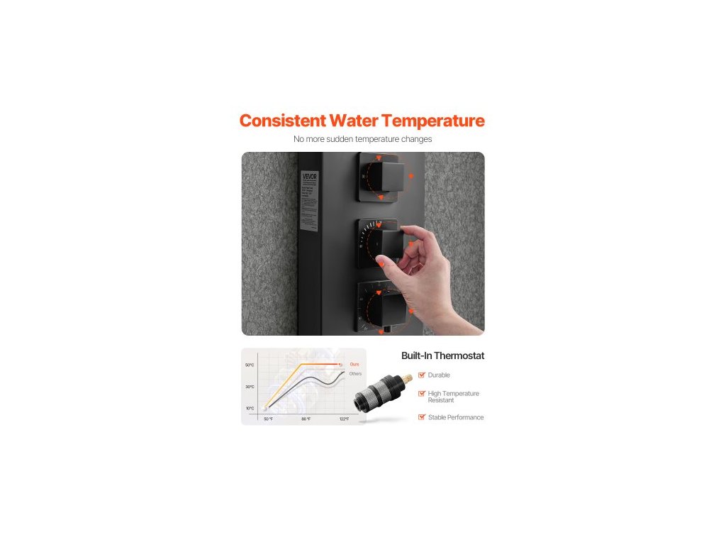 Sprchový panel s věžovým systémem a dešťovou sprchovou hlavicí, sprchový sloup z kartáčované nerezové oceli o průměru 49 palců, 4funkční baterie, nástěnný masážní systém s dešťovou sprchou, 4 tryskami, ruční sprchou a výtokem z vanyMěděné konektory