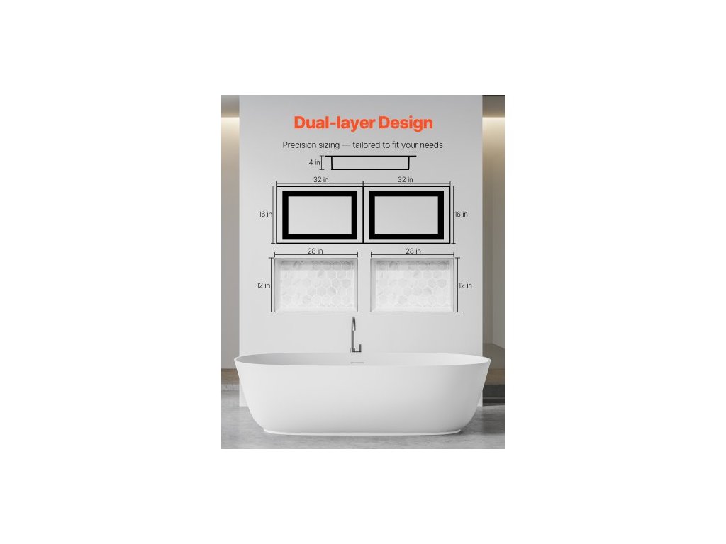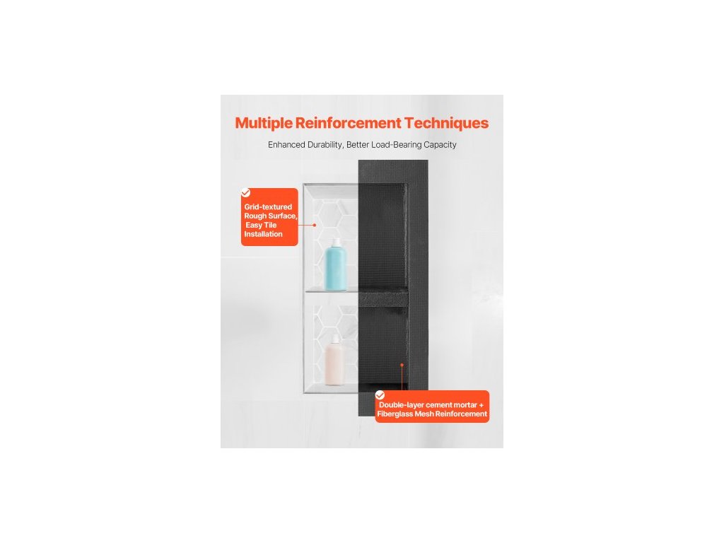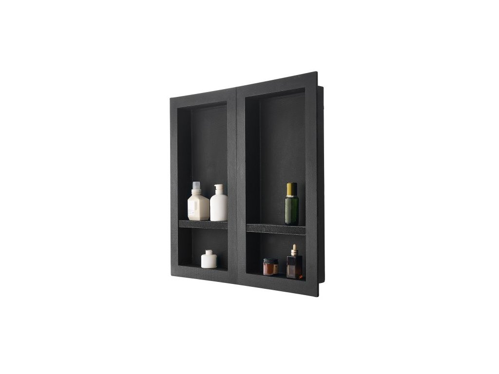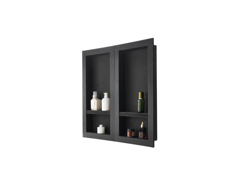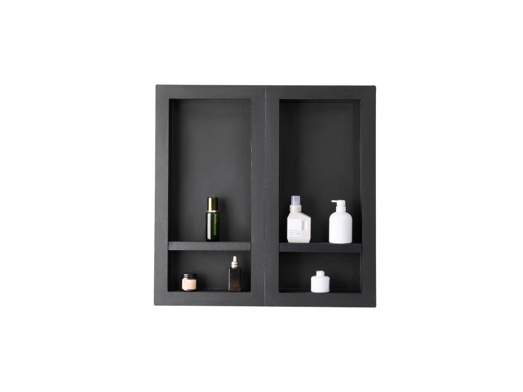 Sprchový výklenek, 40,6 x 81,3 cm + 40,6 x 81,3 cm Zapuštěný nástěnný výklenek s pohyblivou policí, 10,2 cm silný moderní organizér na mýdlo a šampon, hranaté rohy, utěsněný vodotěsný, černý do koupelnyVodotěsný výklenek