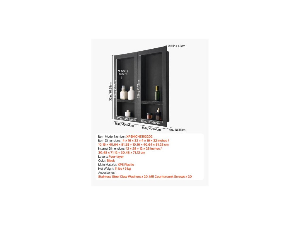 Barva: Černá,Číslo modelu položky: XPSNICHE163202,Rozměry položky: 4x16x32 + 4x16x32 palců / 10,2x40,6x81,3 + 10,2x40,6x81,3 cm,Vnitřní rozměry: 12 x 28 + 12 x 28 palců / 30,48 x 71,12 + 30,48 x 71,12 cm, Vrstvy: Čtyřvrstvé, Čistá hmotnost: 5 kg, Hlavní materiál: XPS plast