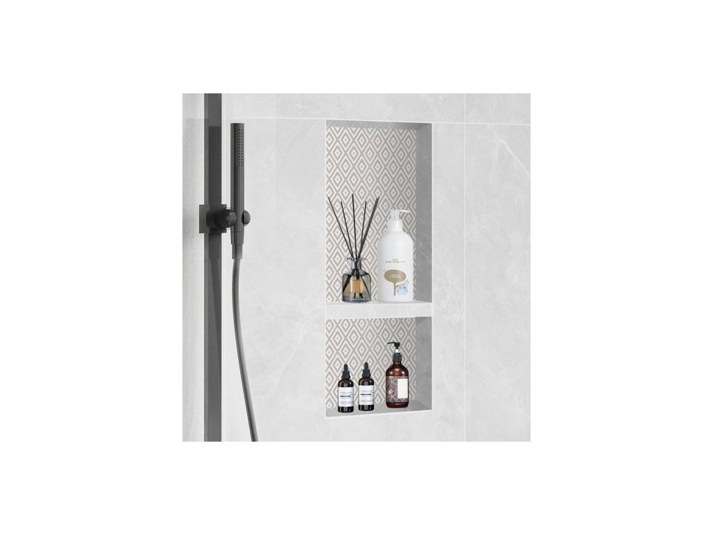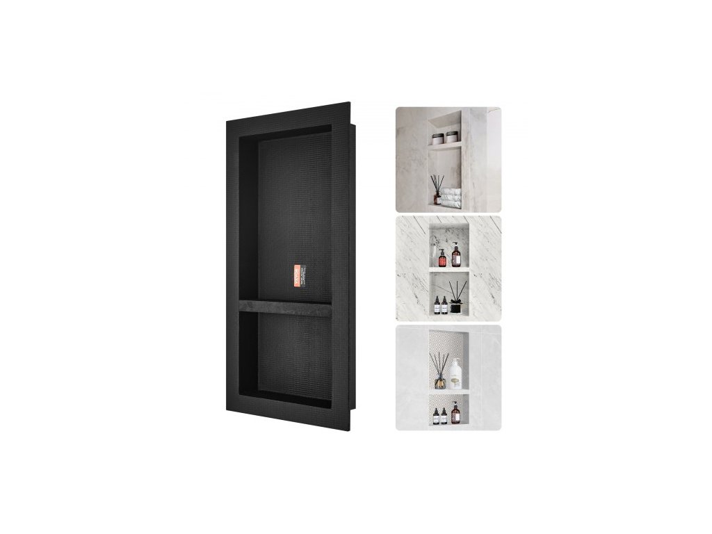 Sprchový výklenek připravený k obkladu 40,64 x 81,28 cm, organizér s dvojitou policí, hranaté rohy, zapuštěný nástěnný výklenek, utěsněná ochrana, moderní úložný prostor na mýdlo do sprchy, černá
