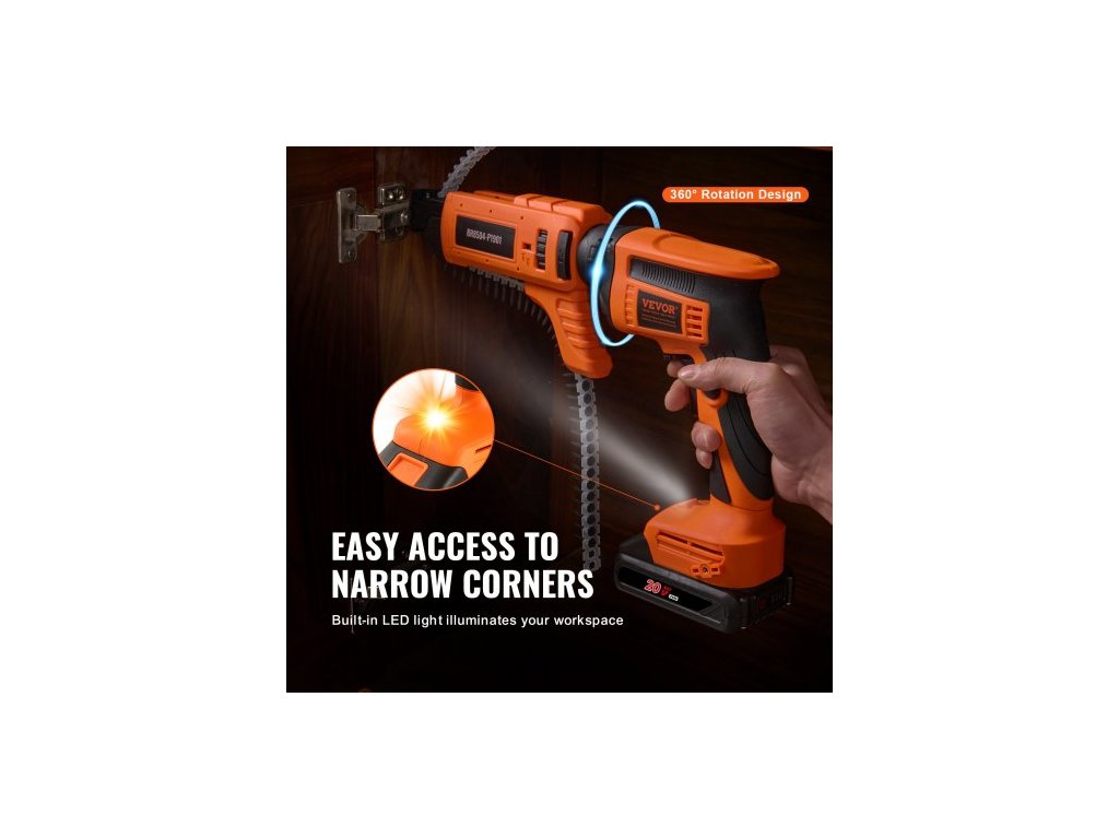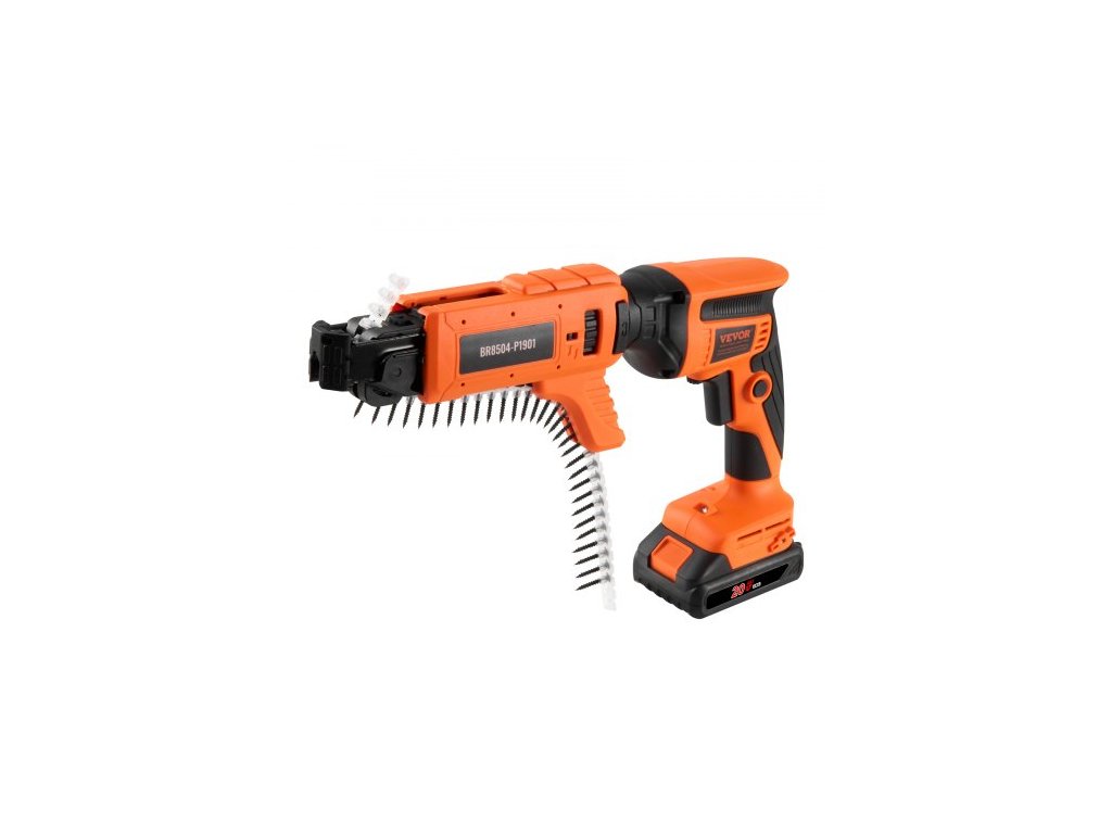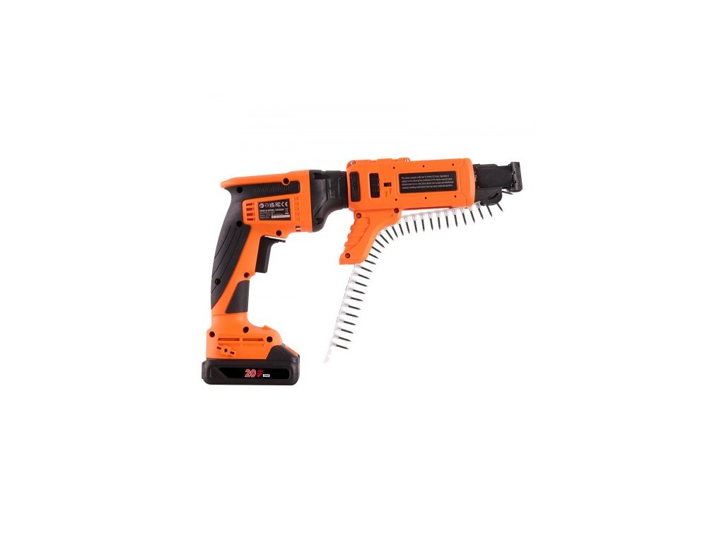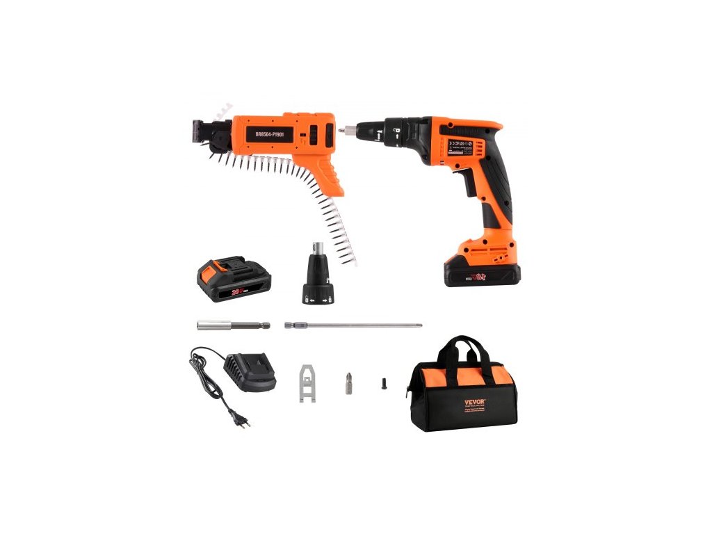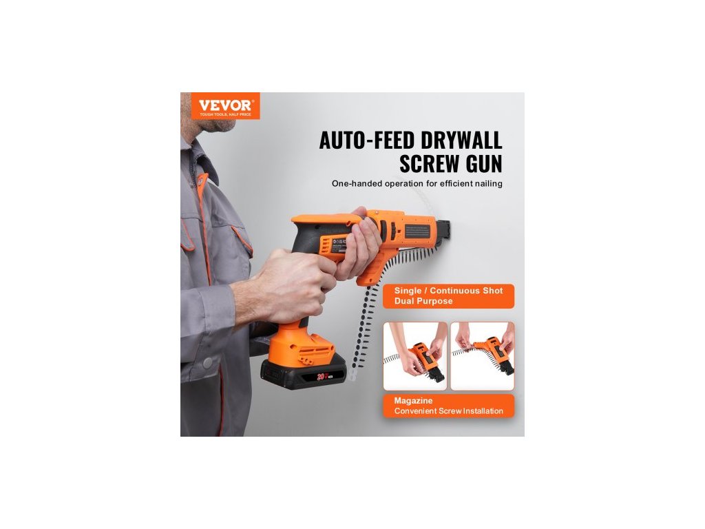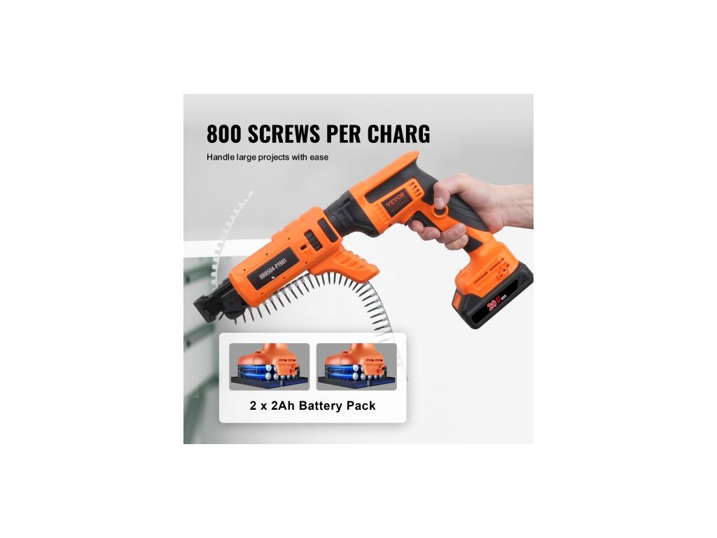Šroubovák na sádrokarton s automatickým podáváním, 20V max. zásobníkový šroubovák na sádrokarton, sada bezkartáčové akumulátorové pistole na sádrokarton 4200 ot./min se 2 akumulátory, nabíječkou, sponou na opasek, brašnou na nářadí, nastavitelnou délkou a hloubkou šroubuVysoký výkon