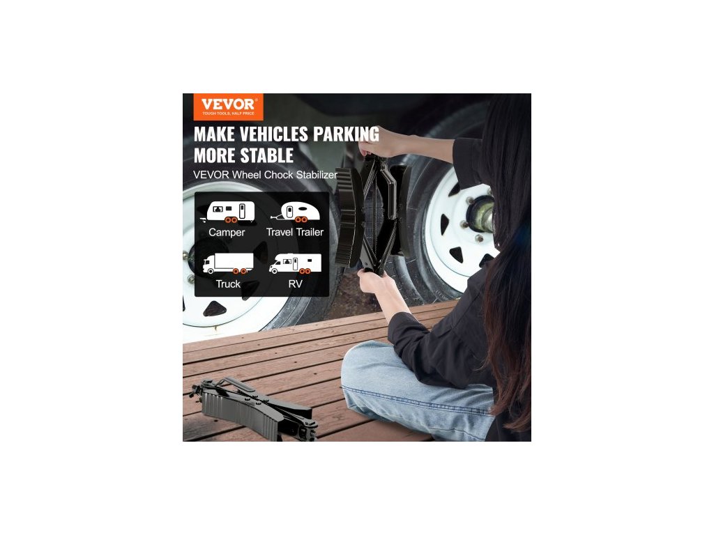 Stabilizační klín pro obytné vozy, odolný klín pro zajišťování pneumatik ve tvaru H, vestavěný klíč vhodný pro pneumatiky o rozměrech 3,5" až 12", 2 sady klínů pro obytné vozy s ráčnovým klíčem pro karavanUdrží váš obytný vůz stabilní