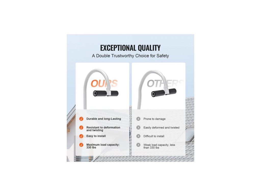 Stabilizátor žebříku , 2v1 prodlužovací hák na žebřík, příslušenství pro hřebenový žebřík horizontálně i vertikálně, odolná ocelová gumová rukojeť ve tvaru T, rychlý přístup na strmé střechy