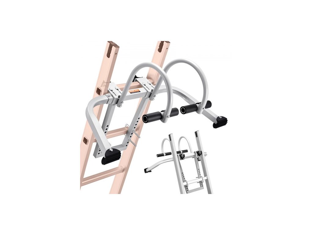 Stabilizátor žebříku , 2 v 1 prodlužovací nástěnný žebřík s distančním hákem, příslušenství pro hřebenový žebřík horizontálně i vertikálně, odolná ocelová gumová rukojeť ve tvaru T, rychlý přístup na strmé střechyFlexibilní lezení