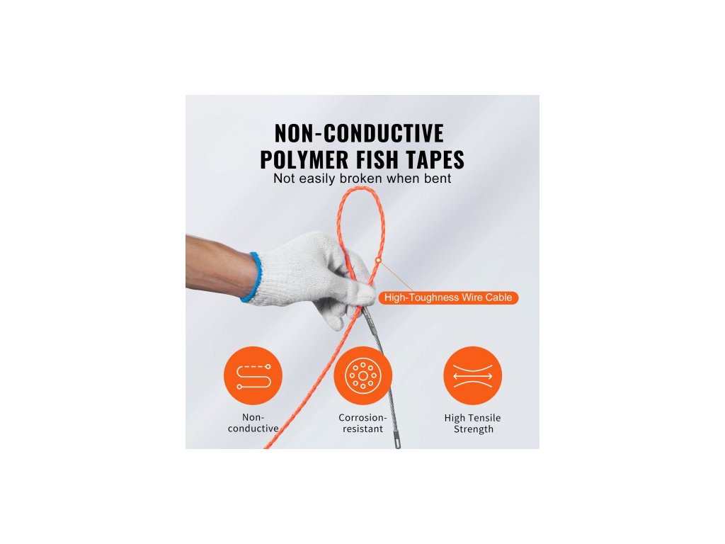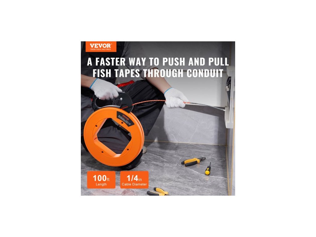 Stahovák na drátěné lanko Fish Tape 30,5 m, 6,35 mm (100 stop, 1/4 palce) PET s vysokým plastovým pouzdrem
