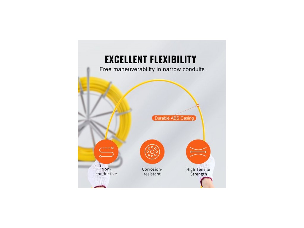 Stahovák na kabel Fish Tape ze skelných vláken 200mx7,9mm (656 ft 5/16 in)Táhlo pro vedení kabelu ze skelných vláken 1/4 in x 656 ft