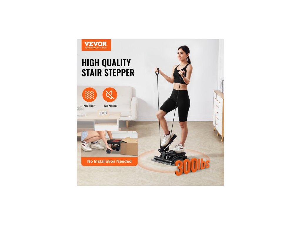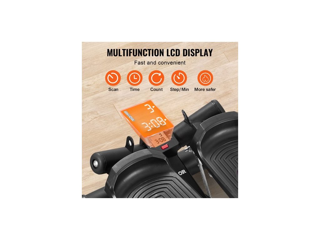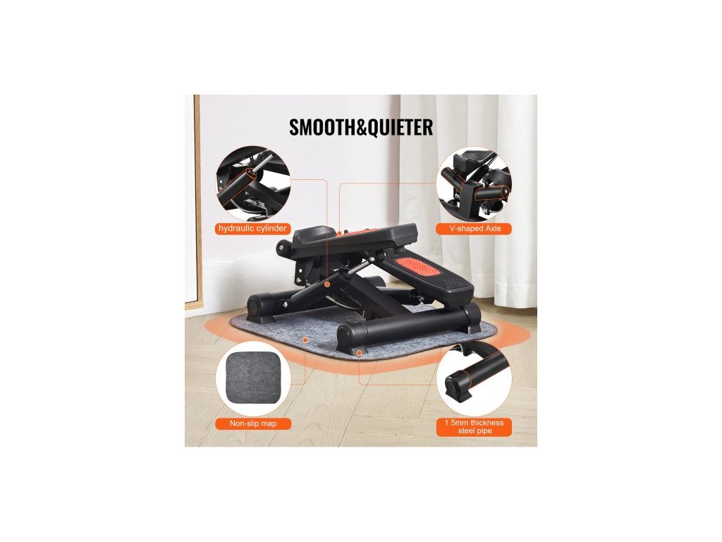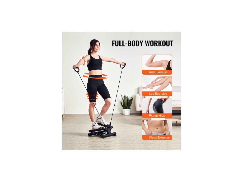 Stair Stepper, mini stepper pro cvičení doma, hydraulický fitness twist stepper s odporovými pásy, kardio zařízení na cvičení celého těla, schodolez s LCD monitorem, nosnost 150 kgCelotělový trénink