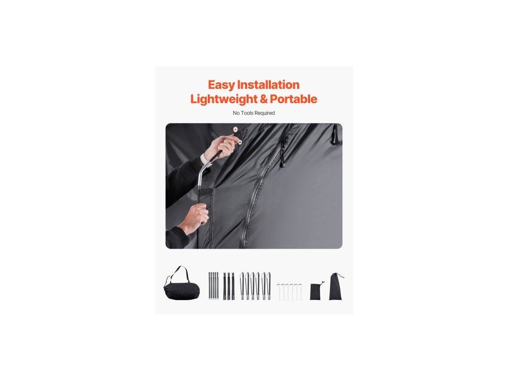 Tvar: Obloukový vršek, Typ otevírání dveří: Přední a zadní dvojité otevírání, Kapacita: 5+ kol, Barva: Černá, Číslo modelu položky: GXSKU4, Materiál: Oxfordská tkanina + podpěrné tyče ze sklolaminátu, Rozměry produktu: 88,19 x 97,24 x 77,95 palce / 2240 x 2470 x 1980 mm, Čistá hmotnost: 7,00 kg / 15,43 lbs