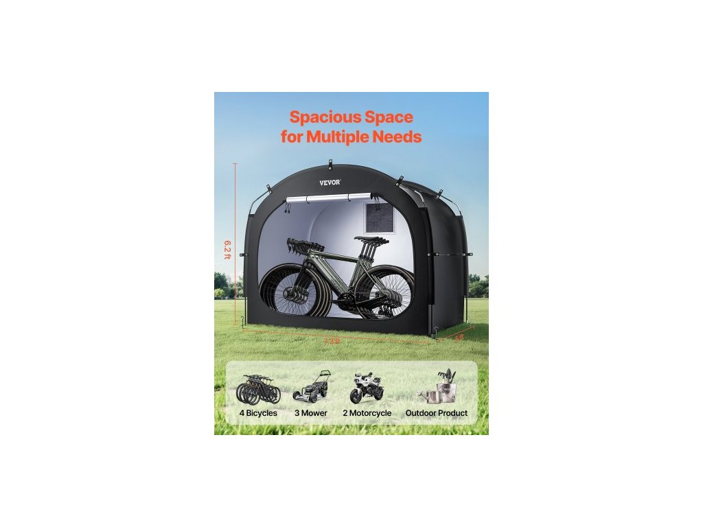 Tvar: Obloukový,Typ otevírání dveří: Jednodveřový,Kapacita: 4-5 jízdních kol,Barva: Černá,Číslo modelu položky: GXSKU3,Materiál: Oxfordská tkanina + podpěrné tyče ze sklolaminátu,Rozměry produktu: 88,98 x 59,45 x 77,56 palce / 2260 x 1510 x 1970 mm,Čistá hmotnost: 4,70 kg / 10,36 lbs