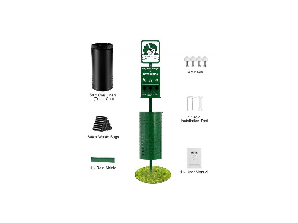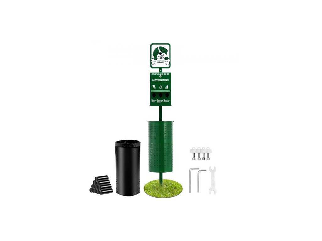Stanice na psí exkrementy , komerční stanice na psí exkrementy, koš na domácí exkrementy o objemu 11,5 galonů s 50 plechovkami, dávkovačem sáčků a 600 sáčky na odpad, venkovní systém likvidace psích exkrementů na zahradu