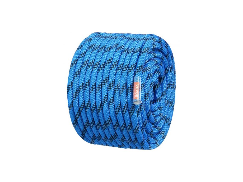 Statické lezecké lano 12,7 mm, 45,7 m (150 stop), venkovní lezecké lano, mezní napětí 30 kN, vláknité lano s ocelovými karabinami pro únik, slaňování, hasičský záchranný sbor, modré