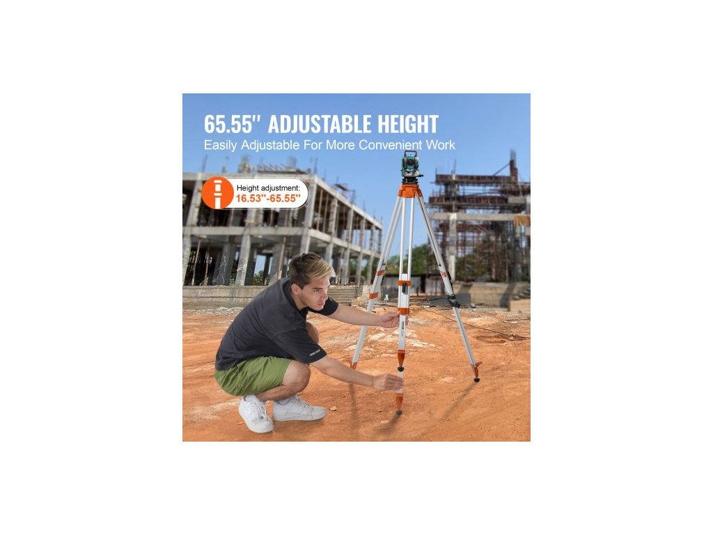 Stativ pro laserový nivelační přístroj , závitový upevňovací prvek 5/8"-11, nastavení výšky 16,53-65,55 palce, robustní geodetický stativ pro stavební laserový nivelační skener, zatahovací nohy, protiskluzové nožičky, profesionální
