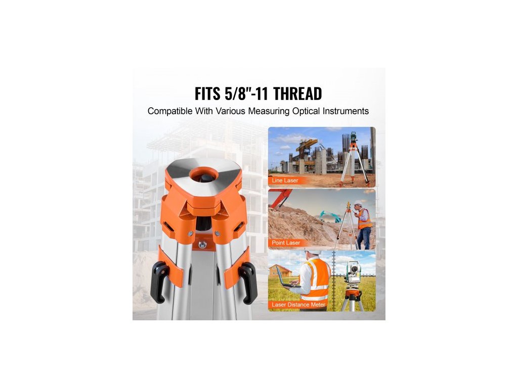 Stativ pro laserový nivelační přístroj , závitový upevňovací prvek 5/8"-11, nastavení výšky 16,53-65,55 palce, robustní geodetický stativ pro stavební laserový nivelační skener, zatahovací nohy, protiskluzové nožičky, profesionálníVysoký výkon