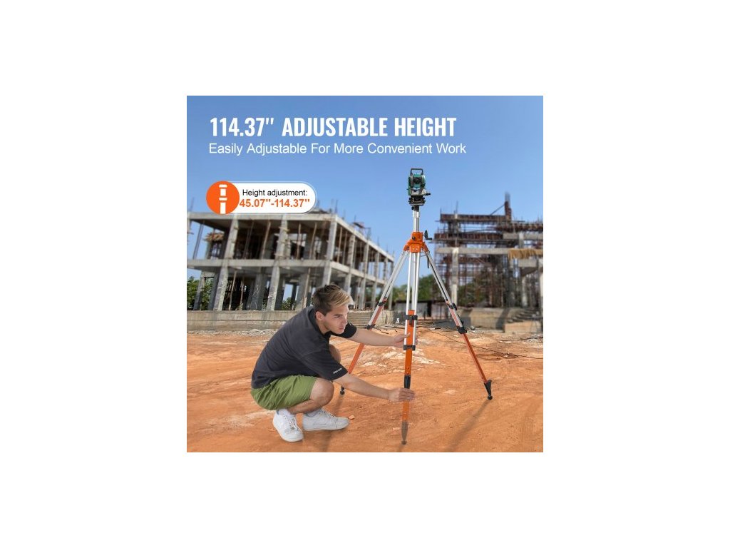 Stativ pro laserový nivelační přístroj , závitový upevňovací prvek 5/8"-11, nastavení výšky 45,07-114,37 palce, robustní geodetický stativ, s libelou a omezovačem difúze, zvedací protiskluzové nohy pro stavebnictvíVysoký výkon