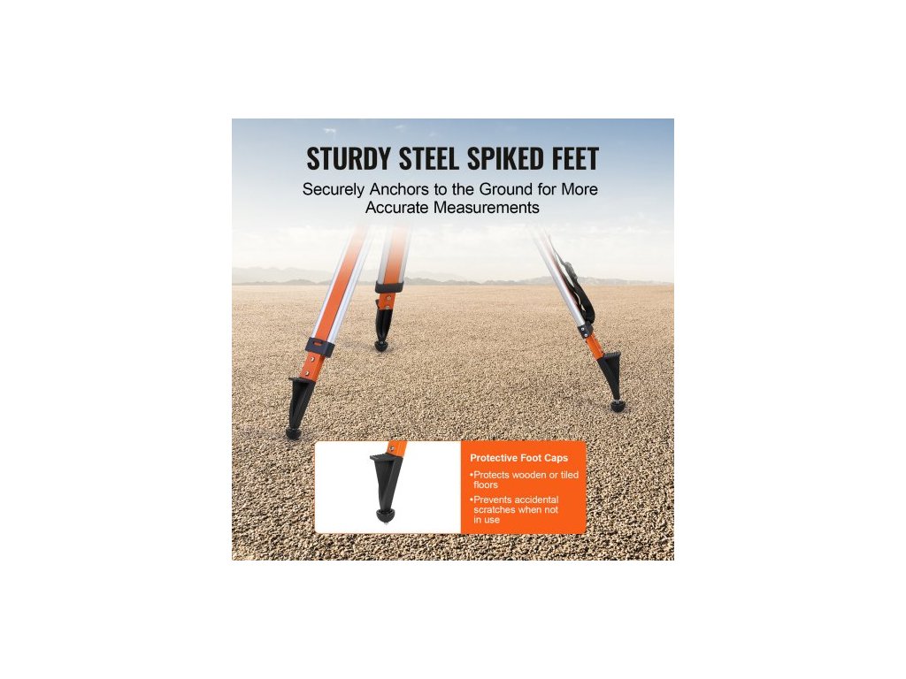 Stativ pro laserový nivelační přístroj , závitový upevňovací prvek 5/8"-11, nastavení výšky 45,07-114,37 palce, robustní geodetický stativ, s libelou a omezovačem difúze, zvedací protiskluzové nožičky pro stavebnictví