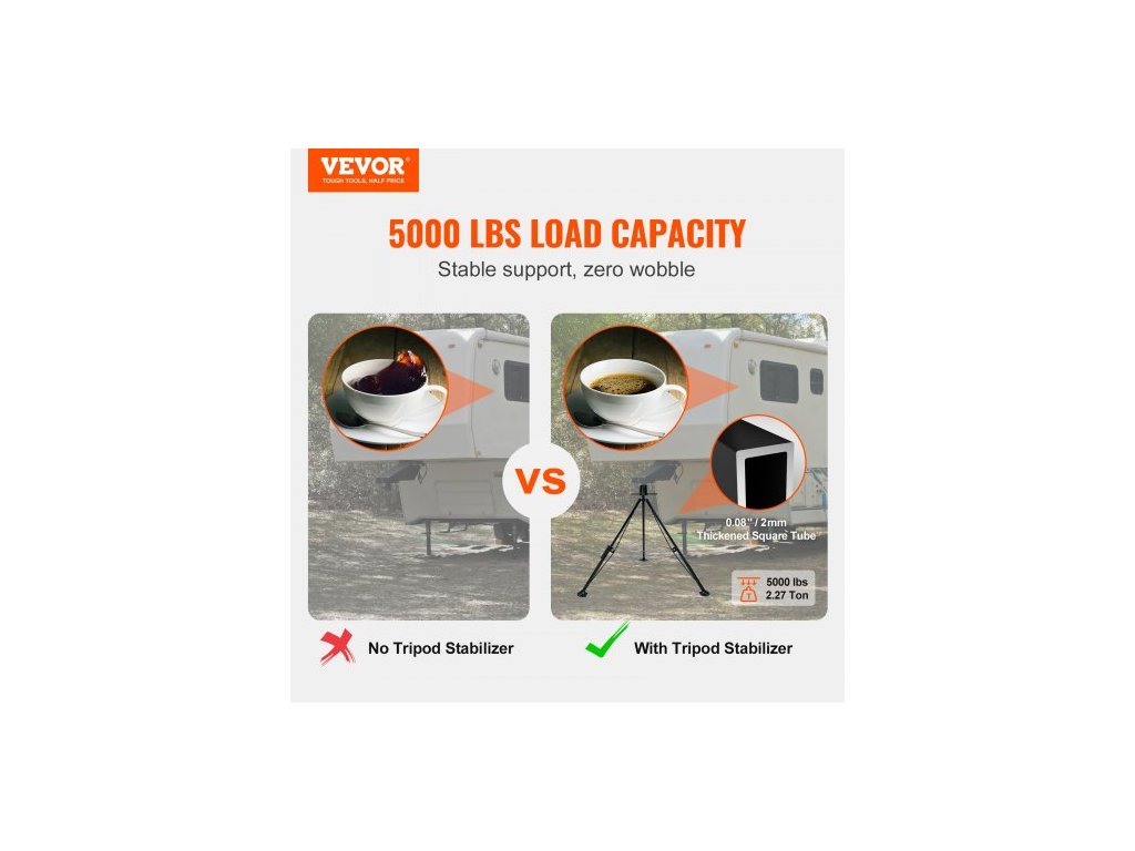 Stativový stabilizátor pátého kola , nosnost 5000 liber, stabilizátor pátého kola s nastavitelnou výškou 91-147 cm, stativový zvedák pro přívěsy s pětikolovým podvozkem, obytné vozy a karavany