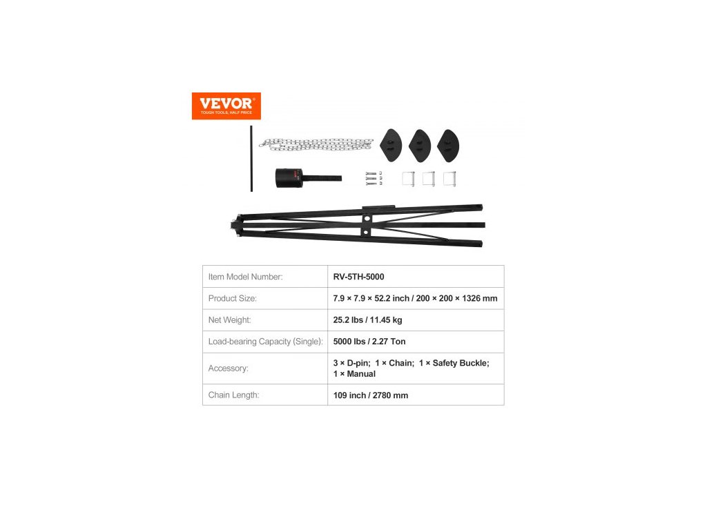Stativový stabilizátor pro páté kolo , nosnost 5000 liber, nastavitelná výška stabilizátoru s husím krkem pro obytné vozy, stativový zvedák pro přívěsy s pěti koly, obytné vozy a karavany, stabilní konstrukce, snadné nastavení, všestranné uchycení, odolnost, instalace bez nářadí, kompletní příslušenství, jmenovitá nosnost: 3333 liber, rozsah výšky: 35"-57"/880-1450 mm, číslo modelu: RV-5TH-5000, množství: 1 sada, materiál: Q235, ocel 45#, max. Nosnost: 5000 liber, Délka řetězu: 109 palců/2780 mm, Čistá hmotnost: 25,2 liber/11,45 kg, Rozměry výrobku: 7,9 x 7,9 x 52,2 palce/200 x 200 x 1326 mmDoplňkové parametry