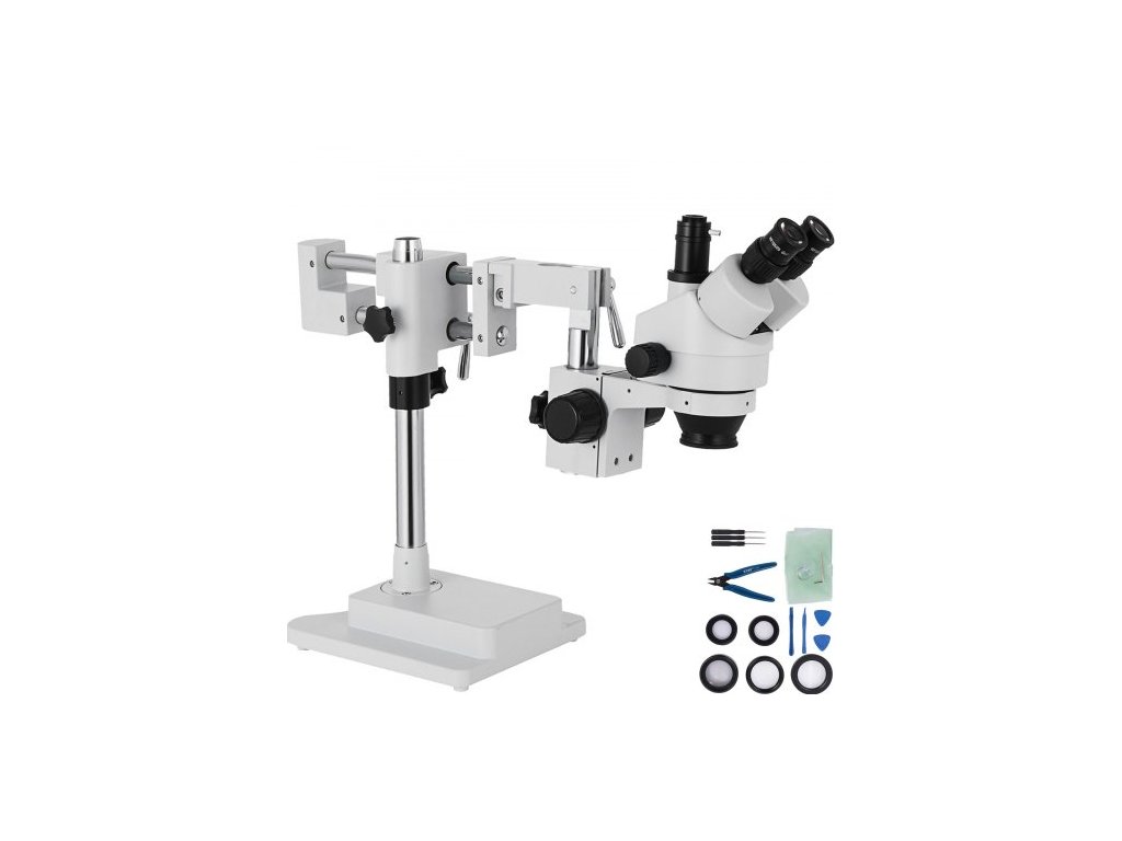 Stereo mikroskop 3,5X-90X se simultánním ohniskem, otočný o 360°, trinokulární stereo mikroskop s dvojitým ramenem
