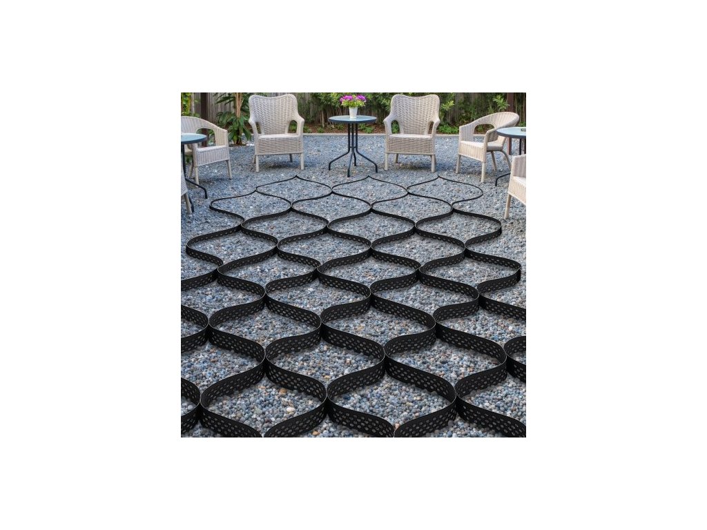Štěrková mřížka , hloubka 7,6 cm, 7600 x 2900 mm, 1880 liber na čtvereční stopu, propustná geomřížka pro stabilizaci příjezdové cesty, pro zahradu, terasu, chodník, svahy pro parkování obytných vozůHluboké zpevnění terénu