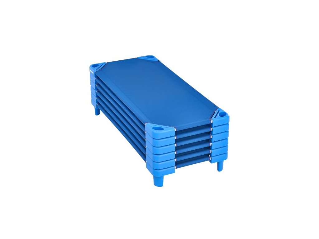 Stohovatelná dětská postýlka, balení 6 kusů, přenosné postýlky pro batolata, standardní velikost 137 cm D x 67 cm Š, postýlky pro denní péči o děti, předškolní třída, postýlky pro denní péči o děti na spaní, odpočinek, zdřímnutí, modrá