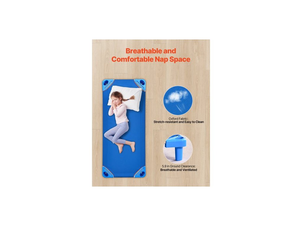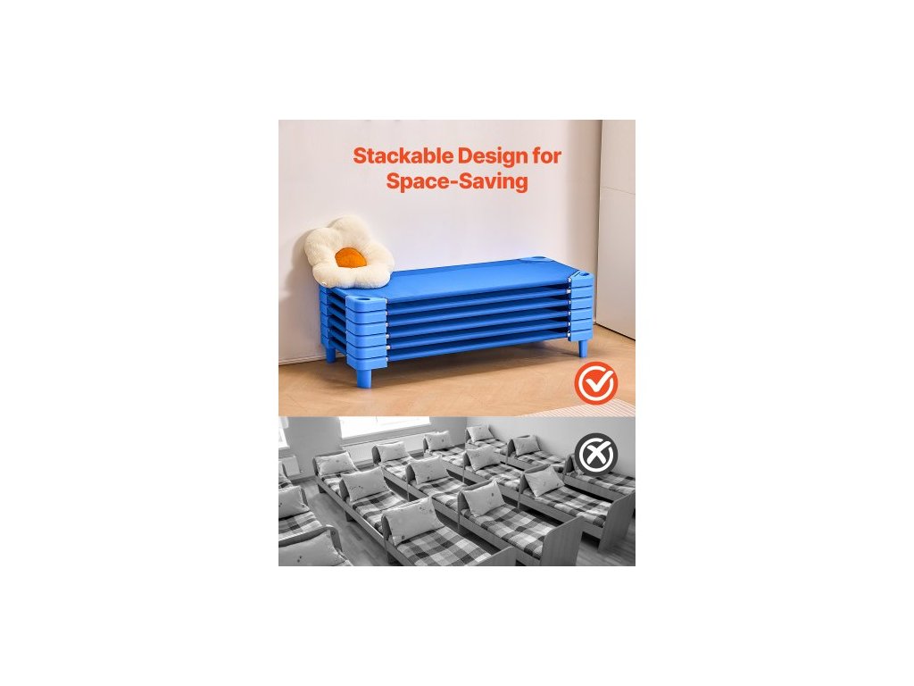 Dětská postýlka Stohovatelná, balení 6 kusů, Přenosné postýlky pro batolata, Standardní velikost 52" D x 23" Š, Postýlky pro denní péči o děti, Postýlky pro předškolní třídy pro spaní, odpočinek a zdřímnutí, ModráPerfektní řešení pro zdřímnutí