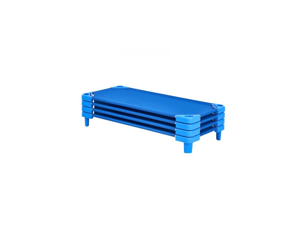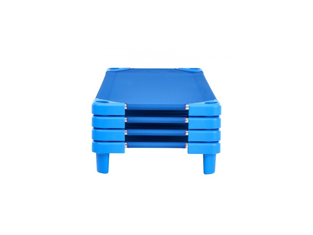 Stohovatelná dětská postýlka, balení po 4 kusech, přenosné postýlky pro batolata, standardní velikost 137 cm D x 67 cm Š, postýlky pro denní péči o děti, předškolní třída, postýlky pro denní péči o děti na spaní, odpočinek, zdřímnutí, modrá