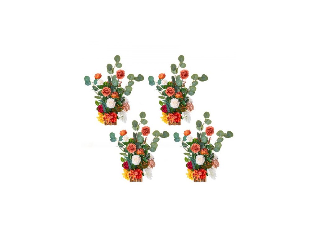 Stojací umělé květinové aranžmá 4 ks, 450 mm vysoké umělé květinové dekorace pro svatební uličku, oranžové květinové dekorace pro obřad, recepci, večírek, venkovní dekorace