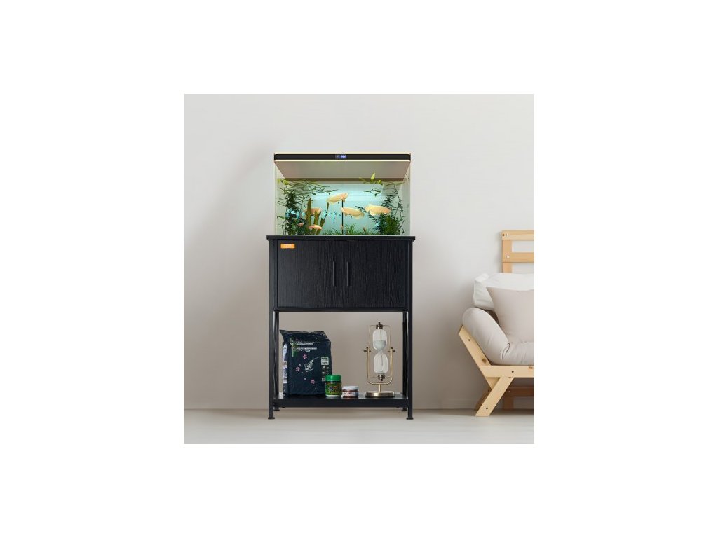 Stojan na akvárium , stojan na akvárium o objemu 20 galonů, stojan na akvárium z oceli a MDF, nosnost 167,6 liber, stojan na akvárium pro plazy s úložnou skříní a vestavěným napájecím panelem, černýStojan na akvárium