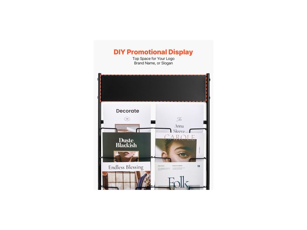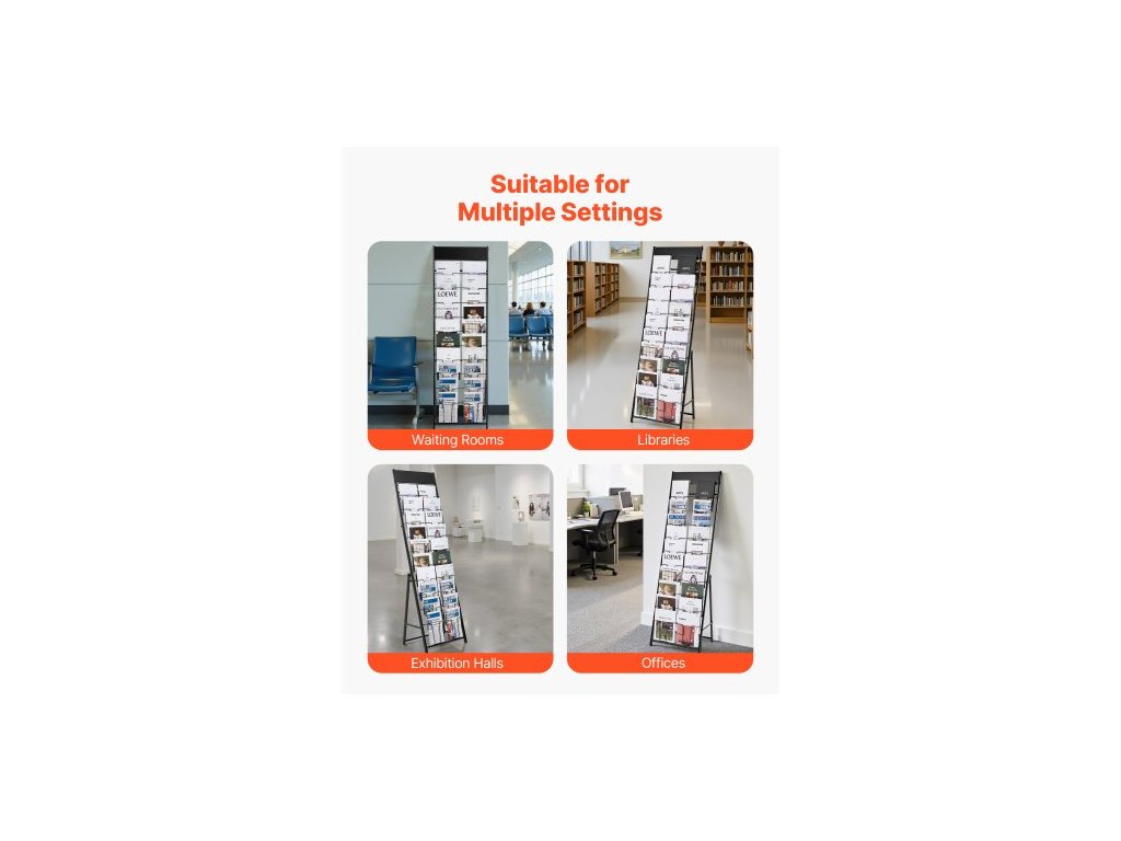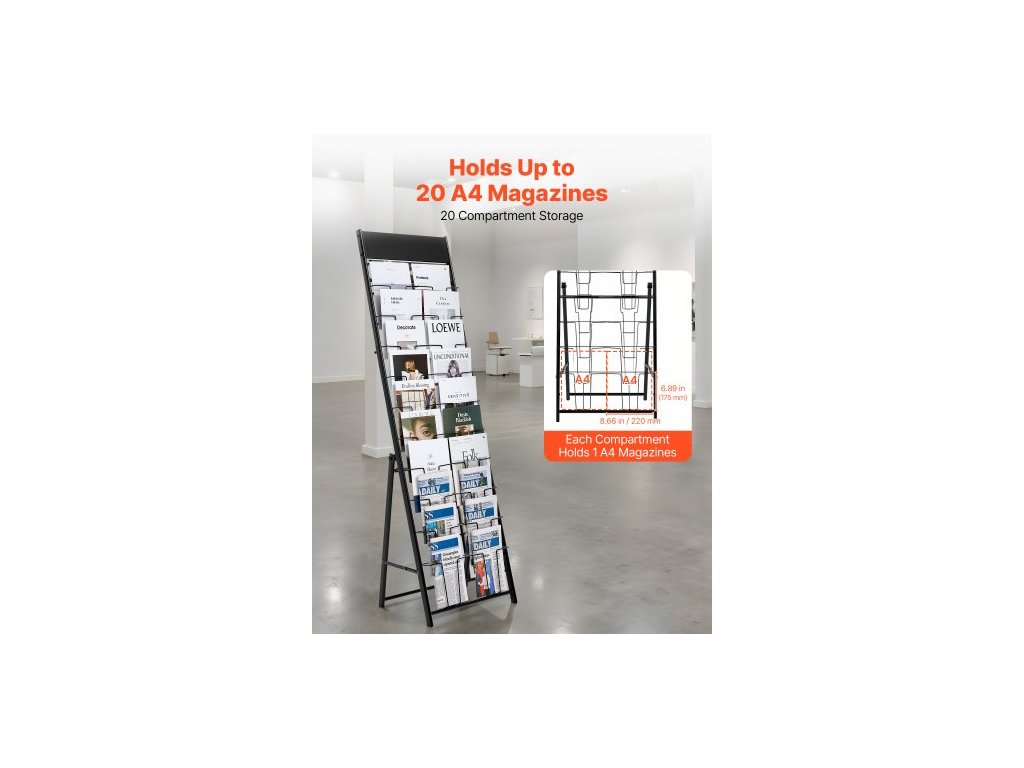 Stojan na brožury , stojan na časopisy a literaturu s 20 kapsami, přenosný stojan na časopisy, kovové držáky na novinové katalogy pro obchod, výstavy, kancelář, veletrhy, černýEfektivní organizace