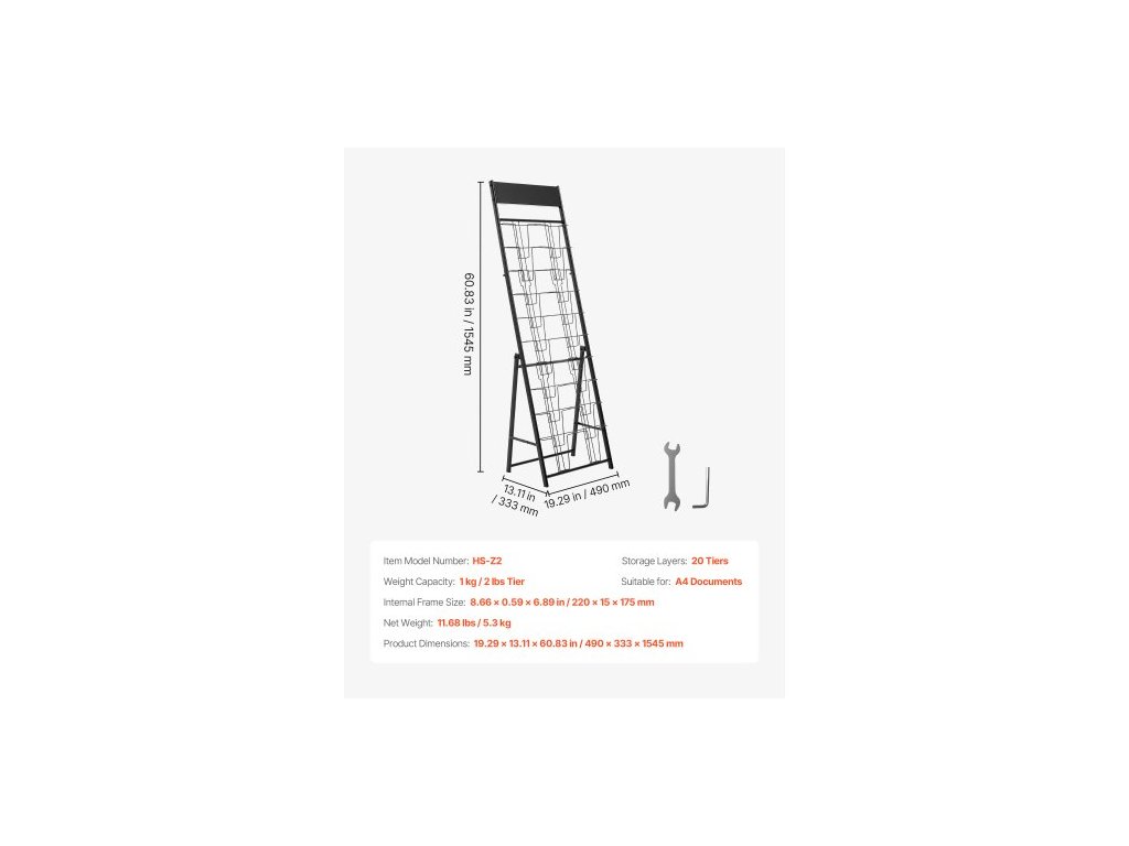 Vnitřní rozměry rámu: 8,66 x 0,59 x 6,89 palce / 220 x 15 x 175 mm,Nosnost: 1 kg / 2 lbs na patro,Úložné vrstvy: 20 patra,Číslo modelu položky: HS-Z2,Rozměry produktu: 19,29 x 13,11 x 60,83 palce / 490 x 333 x 1545 mm,Čistá hmotnost: 11,68 lbs / 5,3 kg,Vhodné pro: Dokumenty A4