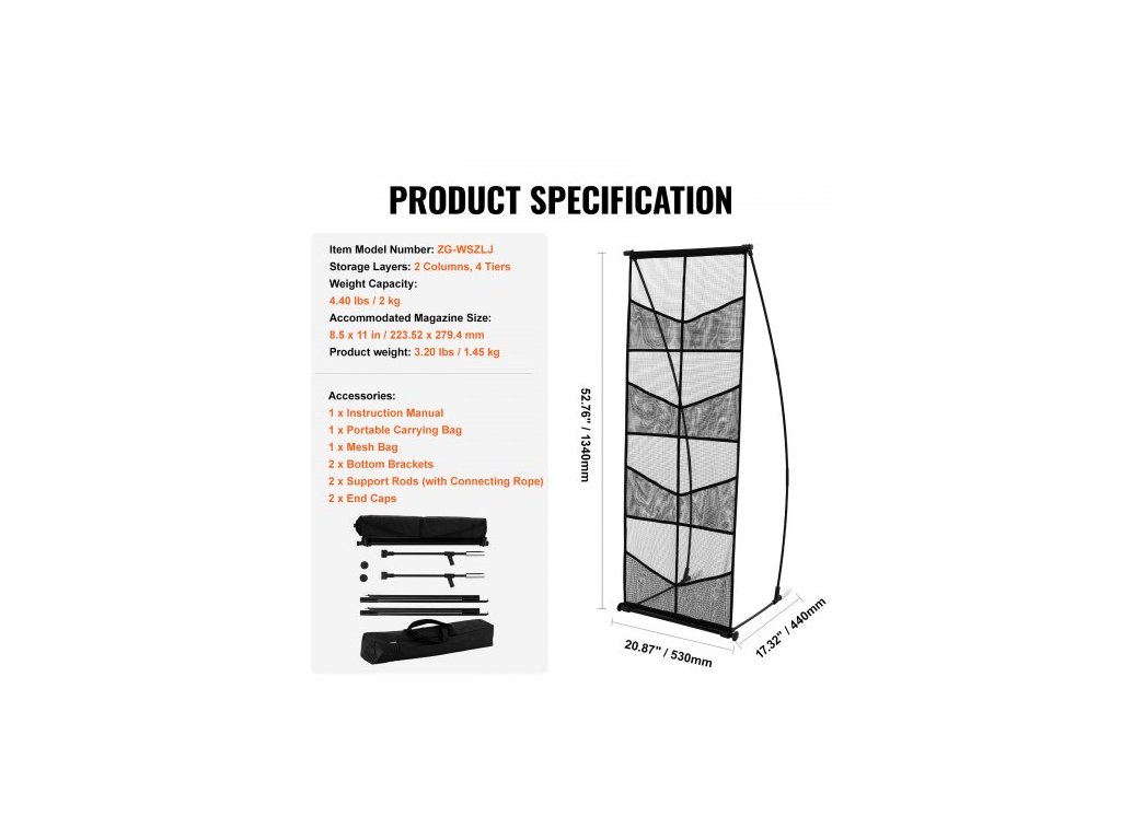 Nosnost: 2 kg, Úložné vrstvy: 2 sloupce, 4 úrovně, Číslo modelu položky: ZG-WSZLJ, Hmotnost výrobku: 1,45 kg, Rozměry po použití: 223,52 x 279,4 mm, Rozměry výrobku: 530 x 440 x 440 1340 mm