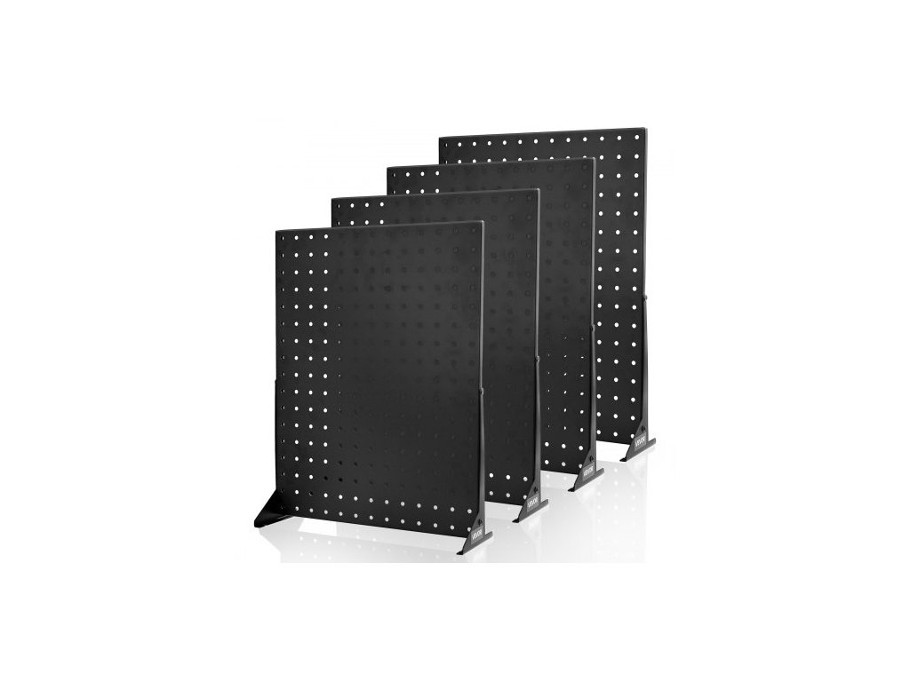Stojan na děrovanou desku , stolní stojan na děrovanou desku 43 x 33 cm, organizér na příslušenství, zesílený ocelový panel s děrovanou deskou válcovanou za studena pro obchod s potravinami a klenotnictví, černý (4 ks)