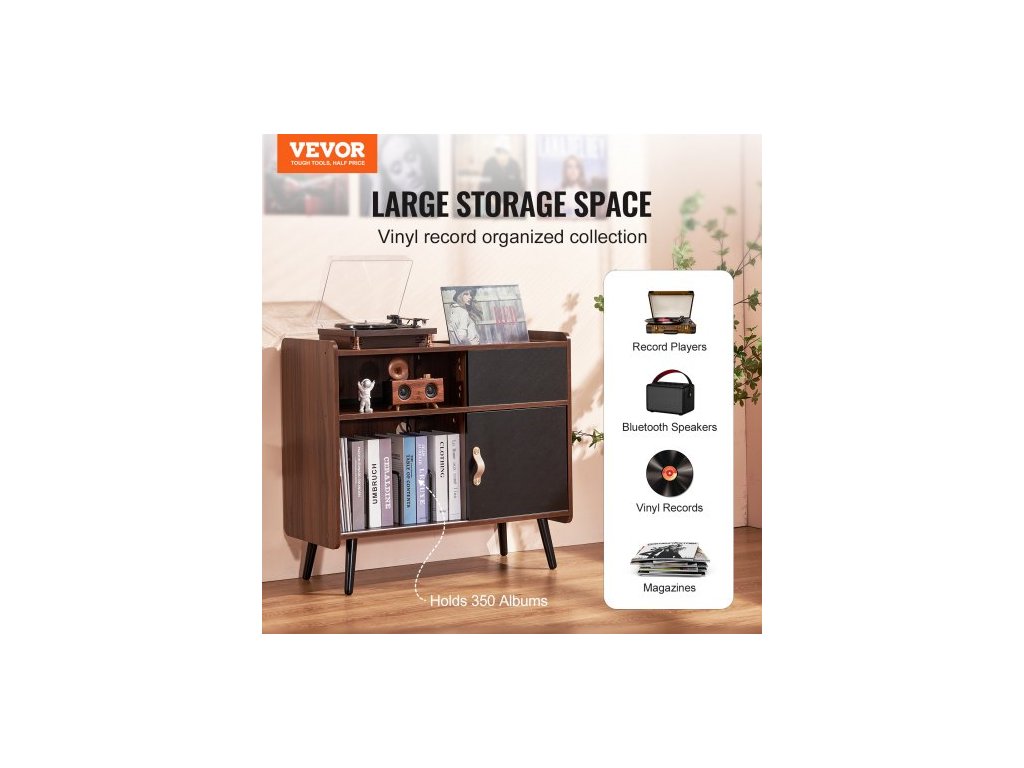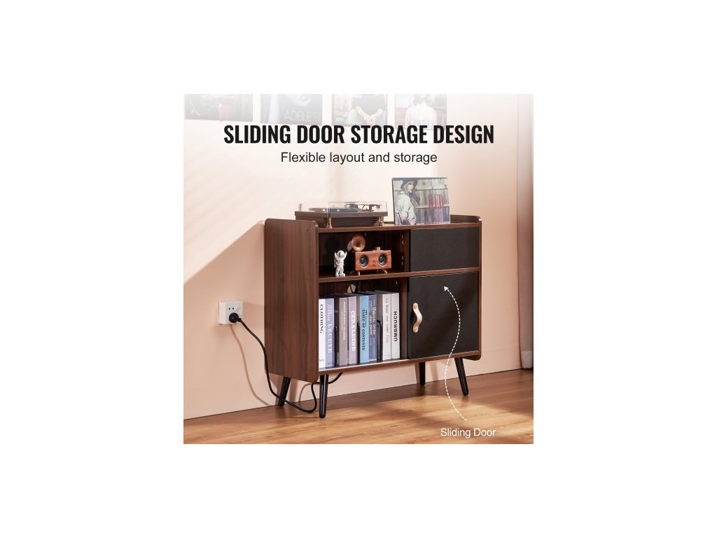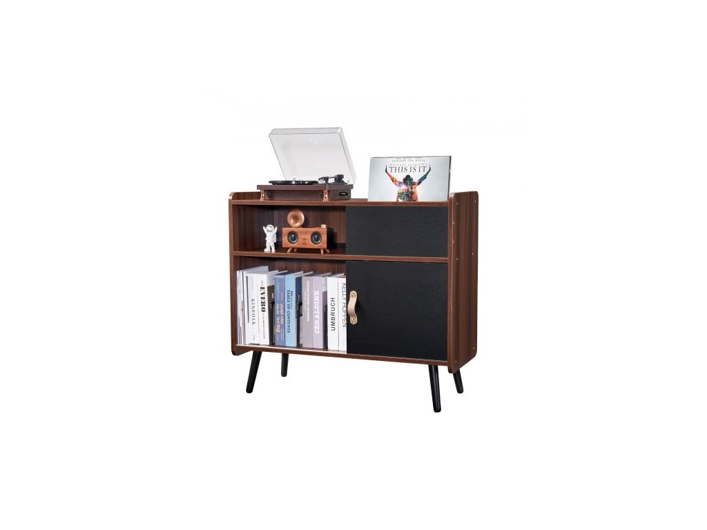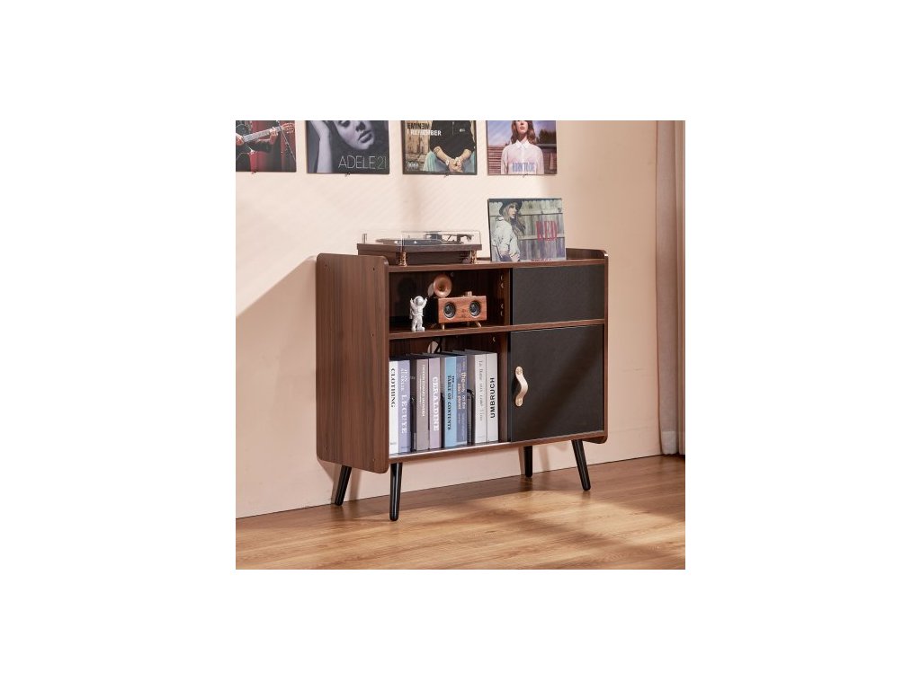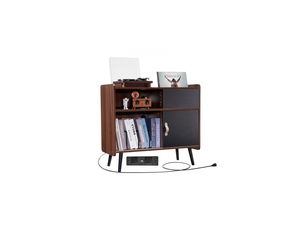 Stojan na gramofon se zásuvkou, stojan na gramofon pojme až 350 alb, stolek na gramofon s úložným prostorem na vintage vinylové desky do obývacího pokoje, ložnice, hnědýÚhledný a organizovaný