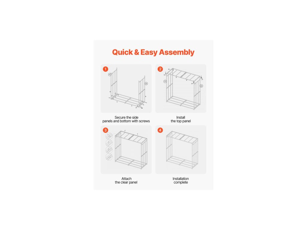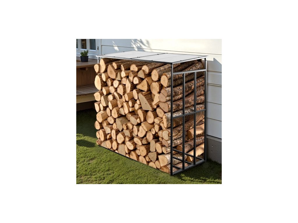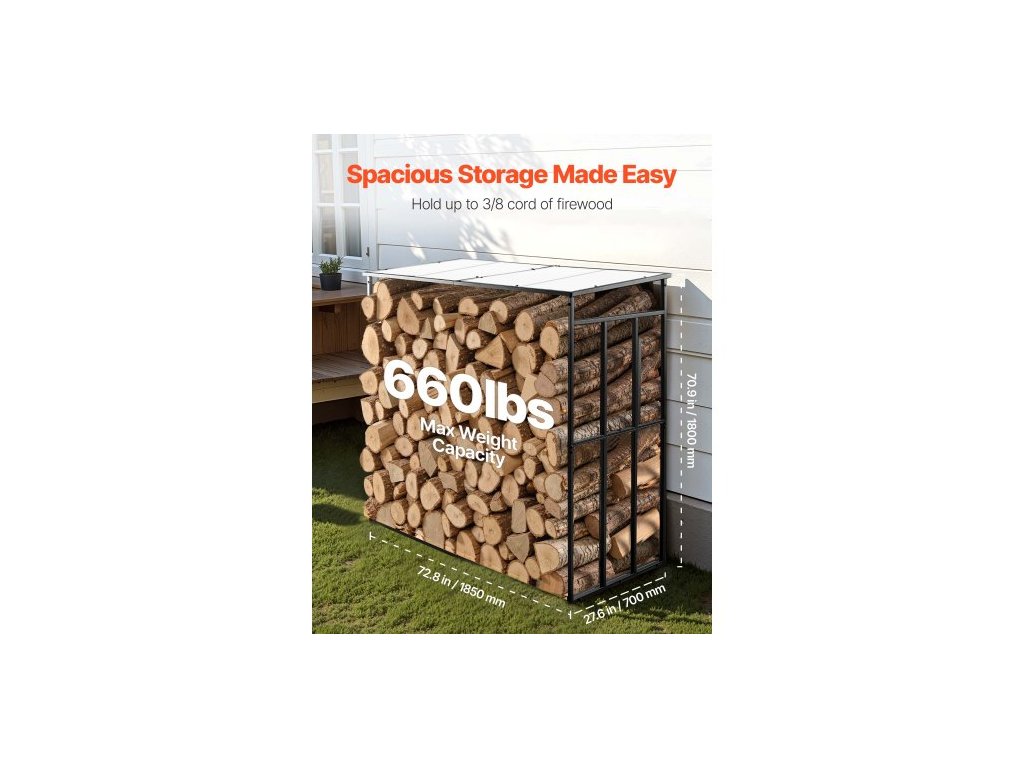 Stojan na palivové dřevo se šikmou střechou, venkovní držák na dřevo 1,85 m, skladovací přístřešek na polena s 1/4 šňůrou, maximální nosnost 299 kg, kovový stojan na dřevo s práškovým nástřikem pro krbovou terasu, zahradu, dvůr a terasuPolykarbonátové panely
