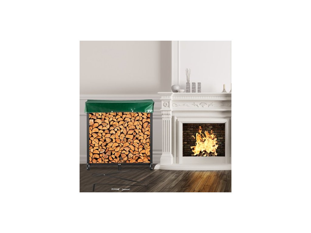 Stojan na palivové dřevo , venkovní stojan na palivové dřevo o délce 1,8 m, černý stojan na palivové dřevo, ocelový venkovní stojan na dřevo, držák na palivové dřevo s nosností 590 kg, stojan na palivové dřevo s krytem a sada krbového nářadí.