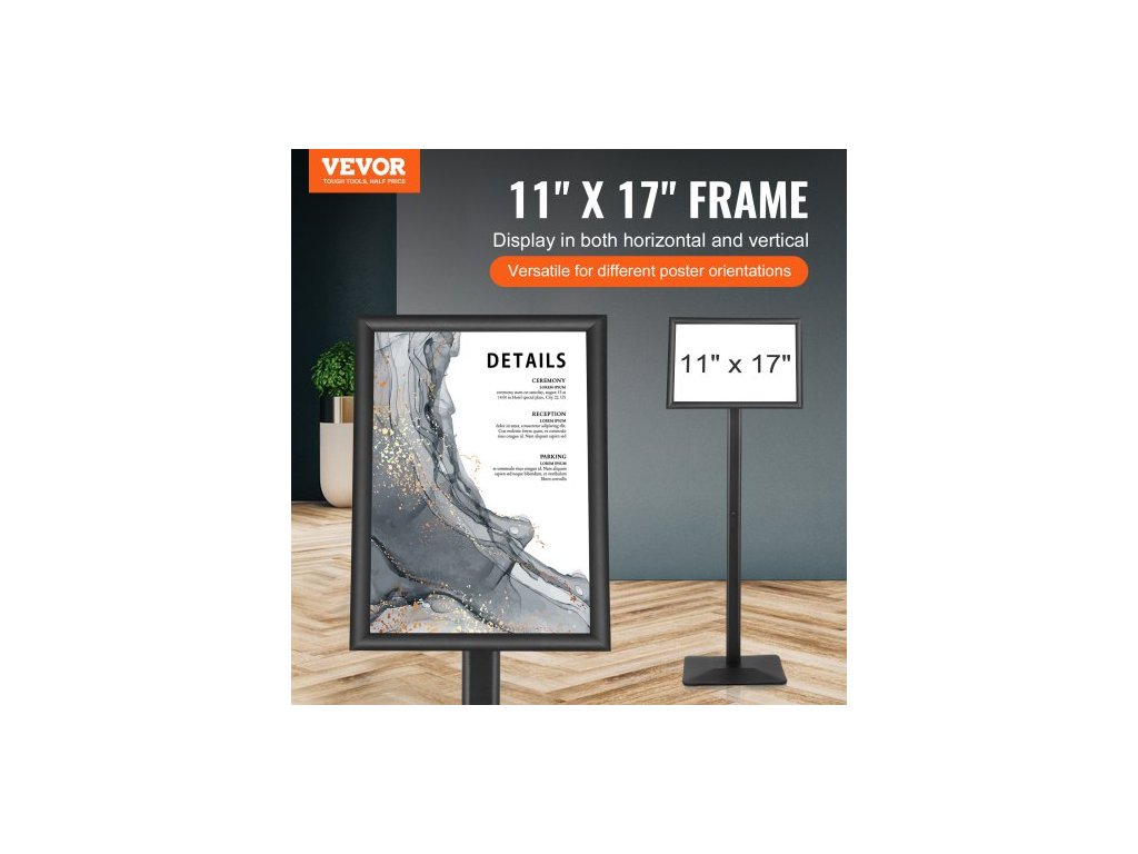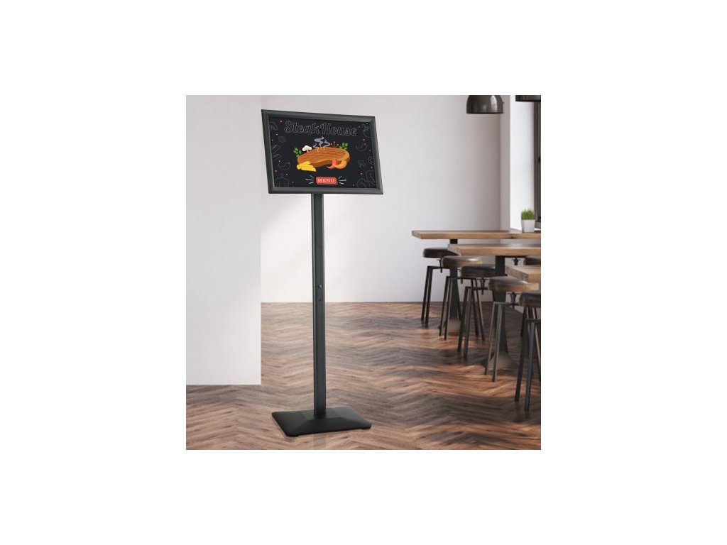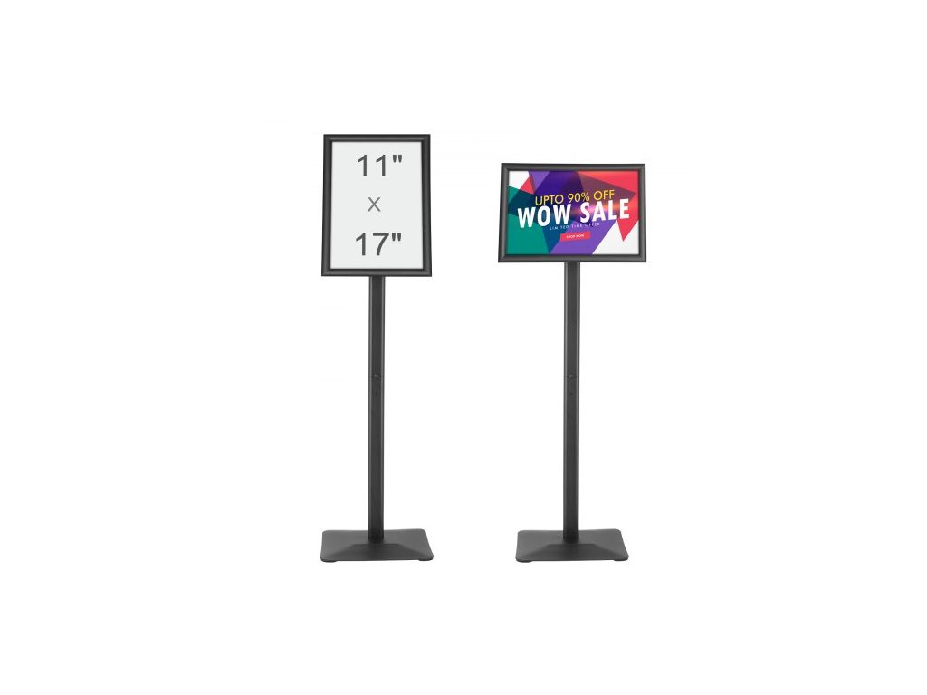 Stojan na plakáty , vertikální a horizontální nastavitelný stojan na plakáty 11 x 17 palců, odolný podlahový držák na plakáty s kovovou základnou pro vystavení, reklamu a venkovní použití, černý