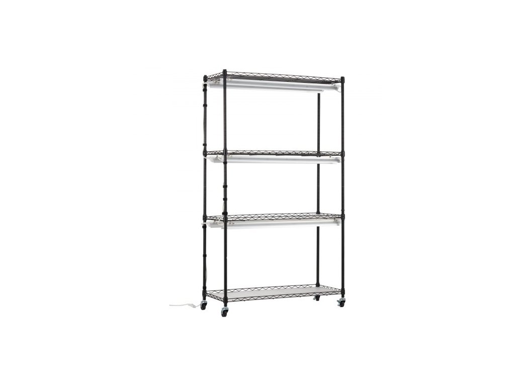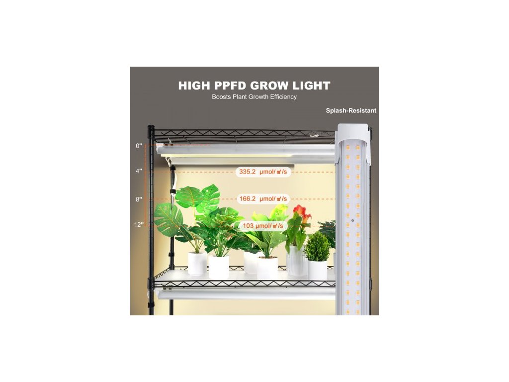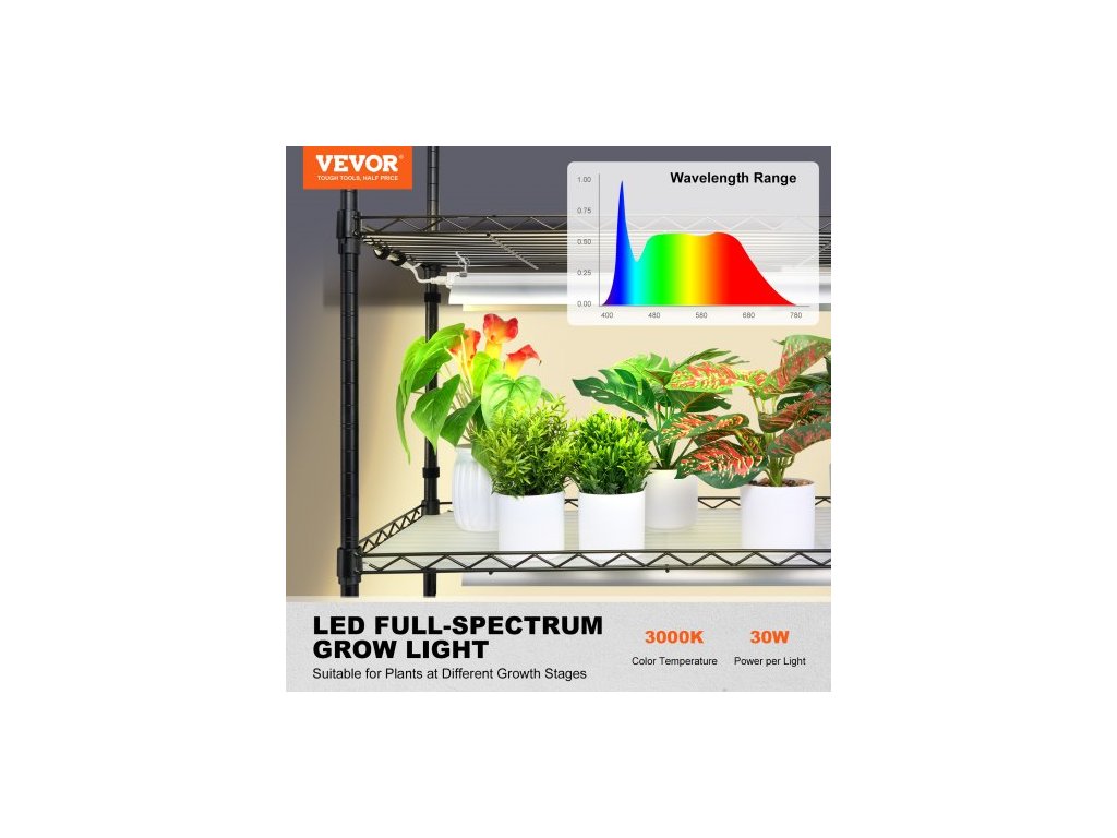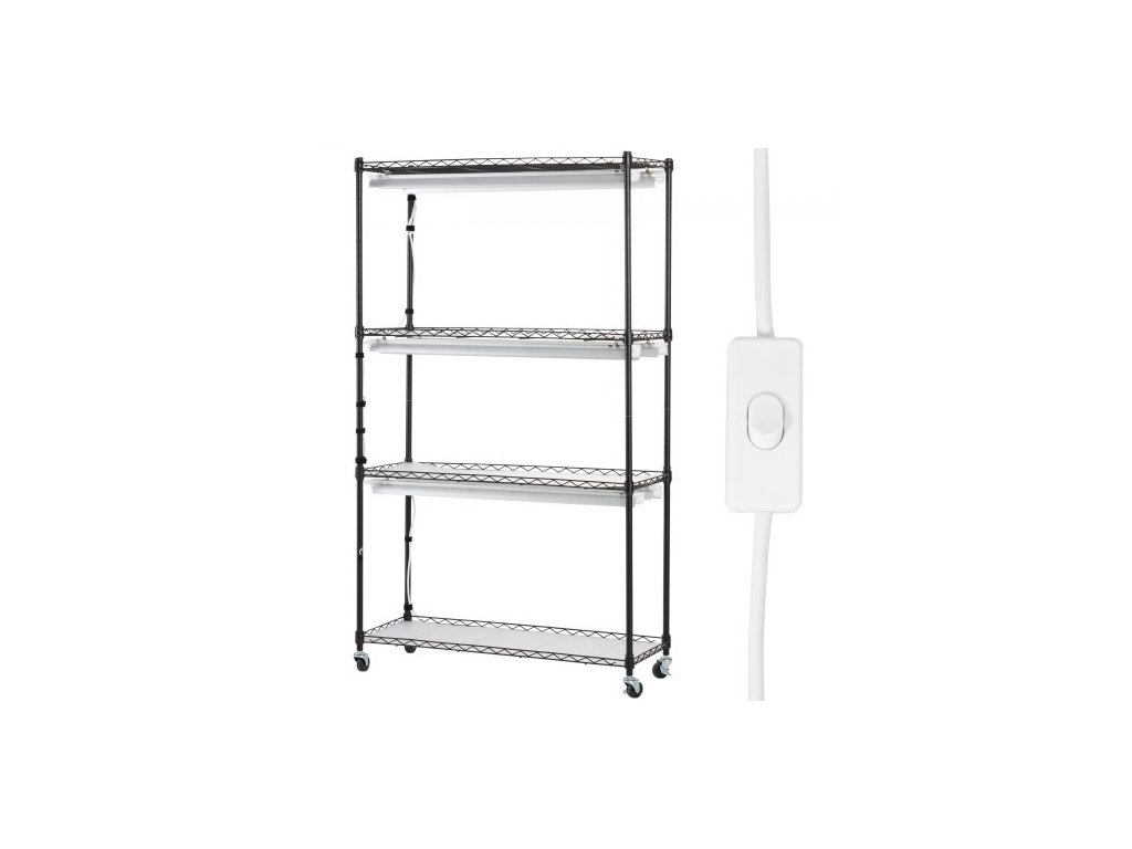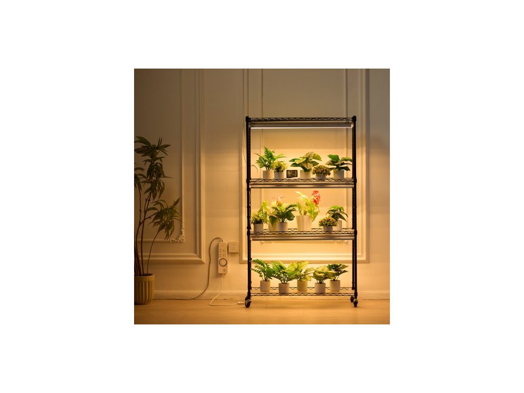 Stojan na rostliny s pěstebním světlem, 4 úrovně, 180W vnitřní pěstební světlo, 3 režimy spektra světla, kovová police na rostliny s časovačem, zahradní pěstební stojan pro setí, 91,5 cm D x 33,8 cm Š x 147,1 cm V