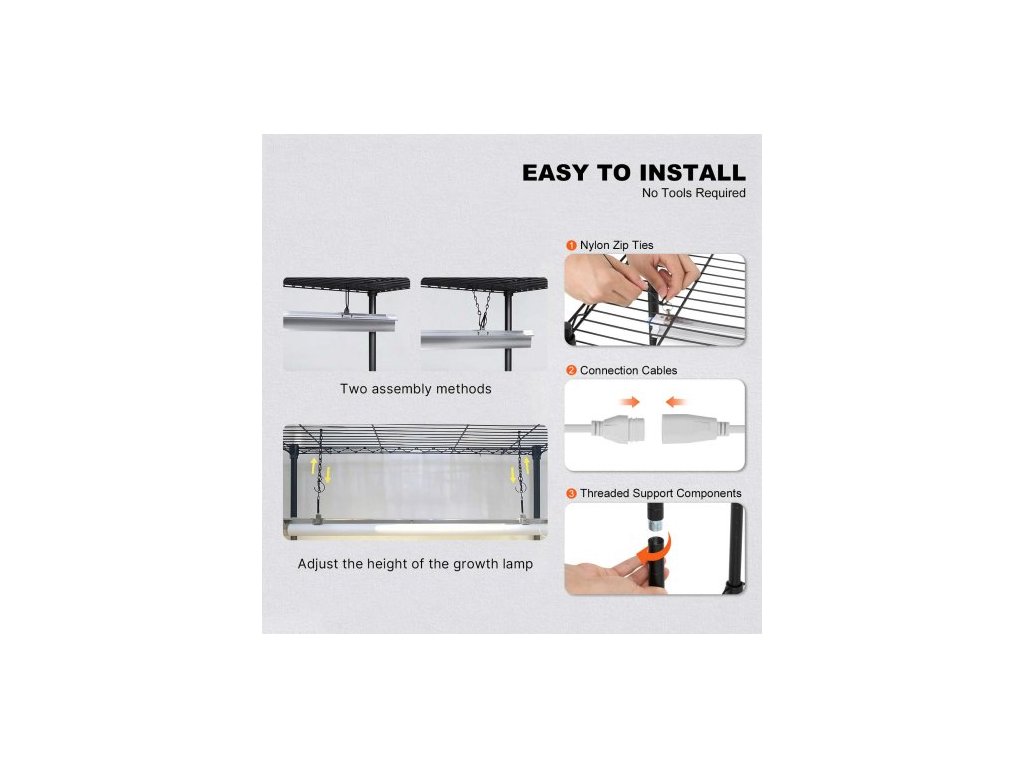 Hlavní materiál: Železo Q235, Počet pěstebních světel: 6, Nosnost: 150 kg, Výkon jednoho světla: 30 W, Barva: Černá, Celkový výkon: 180 W, Číslo modelu položky: 4C15090-T8DP09P6-EU, Hmotnost výrobku: 13,6 kg, Rozměry výrobku: 94,6 x 33,78 x 147,4 cm 900 × 350 × 1500 mm