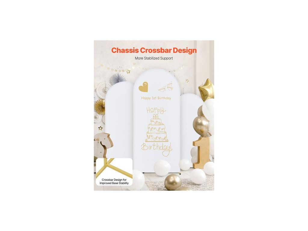 Stojan na svatební oblouk , sada 3 kusů, stabilní kovový stojan s konektorem a příčnými tyčemi, snadno sestavitelný zlatý stojan s prémiovou gázou, vhodný na narozeniny, oslavy, svátky