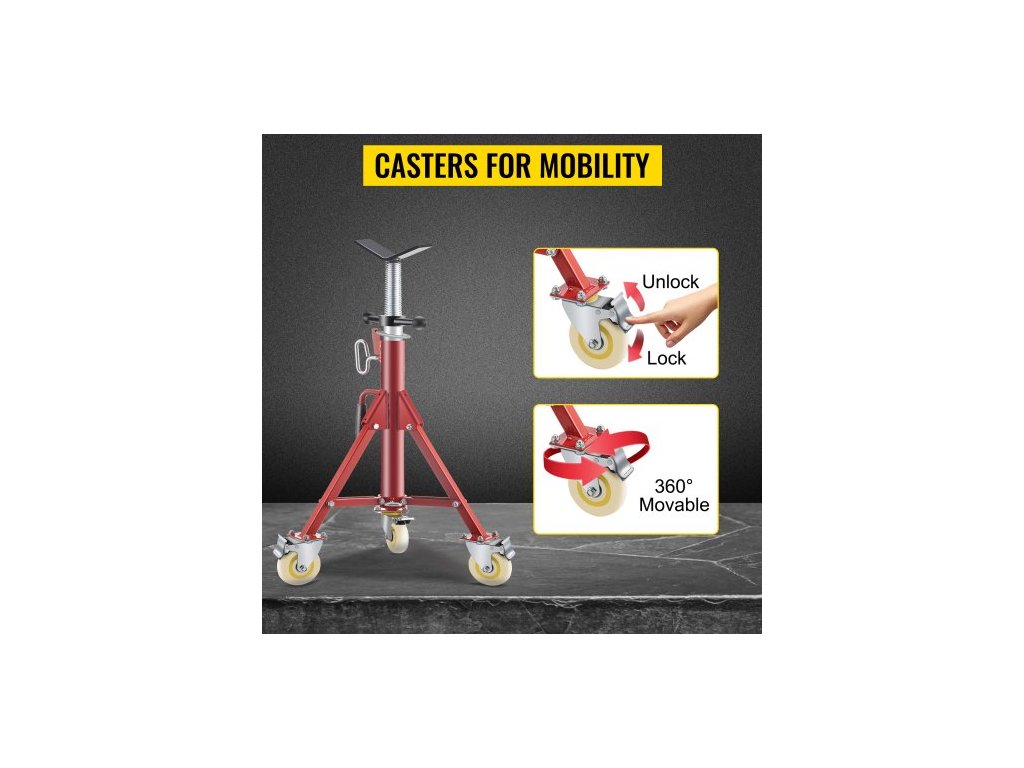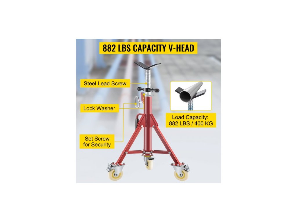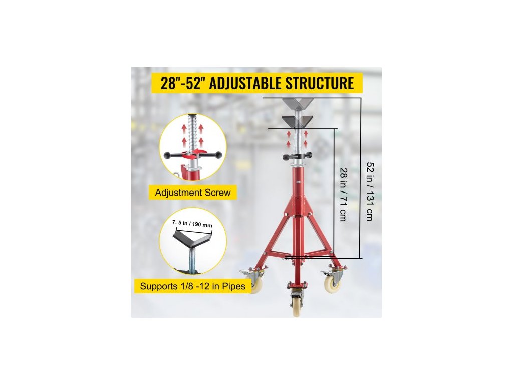 Stojan na trubky , stojan na trubky, stojan na trubky s hlavou V, nastavitelná výška 71,12–132,08 cm, stojany na trubky s kolečky 400,1 kg, skládací přenosné stojany na trubky, podpěra trubek 0,3175 až 30,48 cm, ocelový stojannastavitelná konstrukce 28"–52"