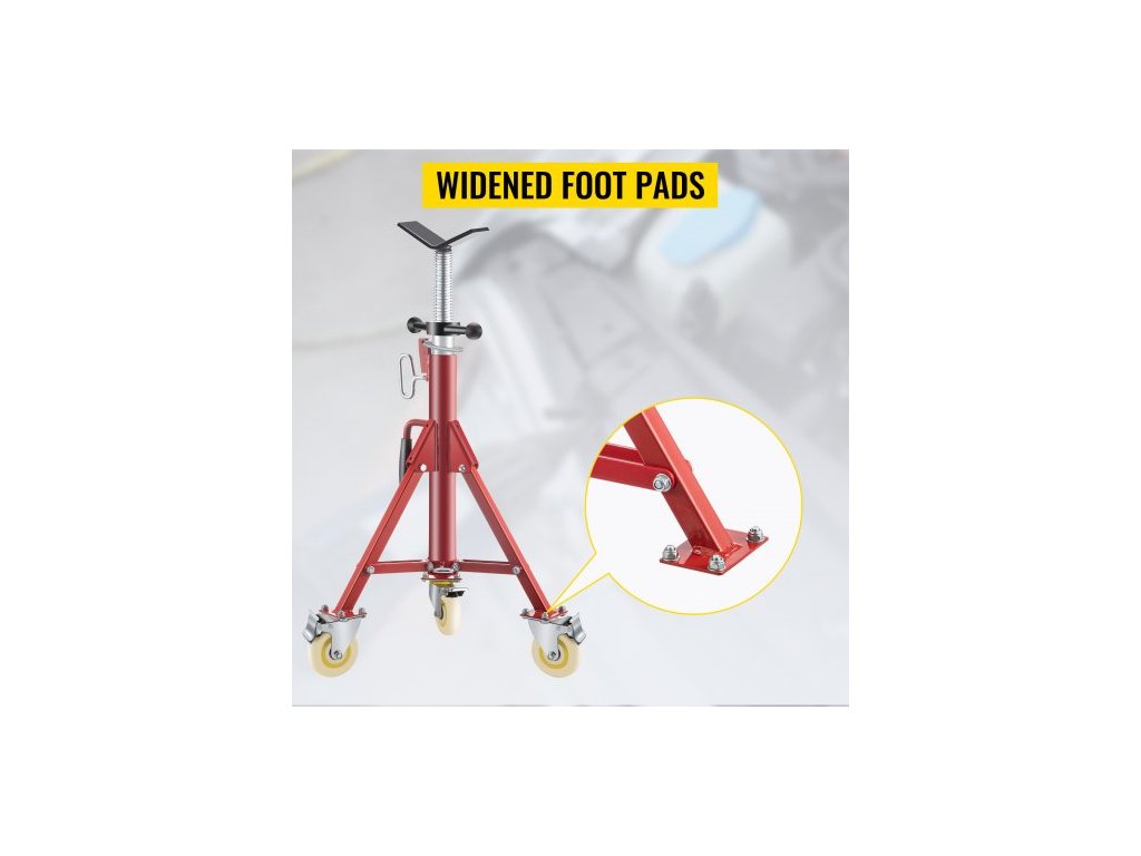 Nosnost: 882 liber/400 kg, model: VV-P-1107AV, průměr trubky: 1/8"–12"/0,32–30,48 cm, hmotnost výrobku: 32,2 liber/14,6 kg, délka výrobku: 21,3 palce/54 cm, materiál: ocel, výška: 28–52 71–131 cm (palce)